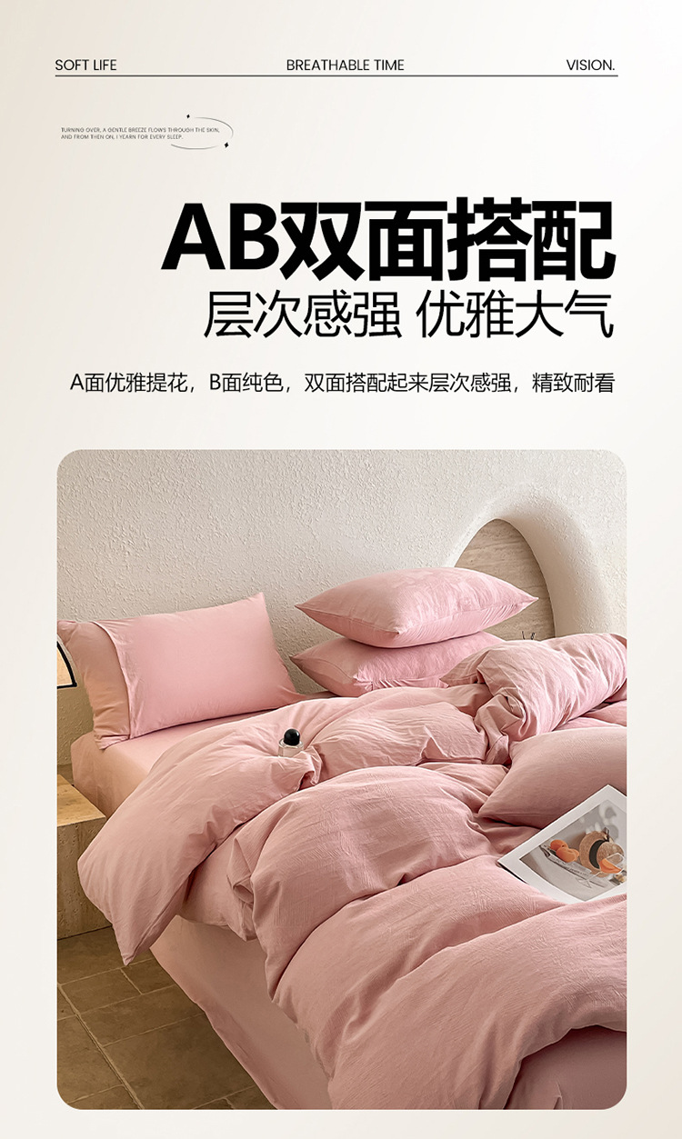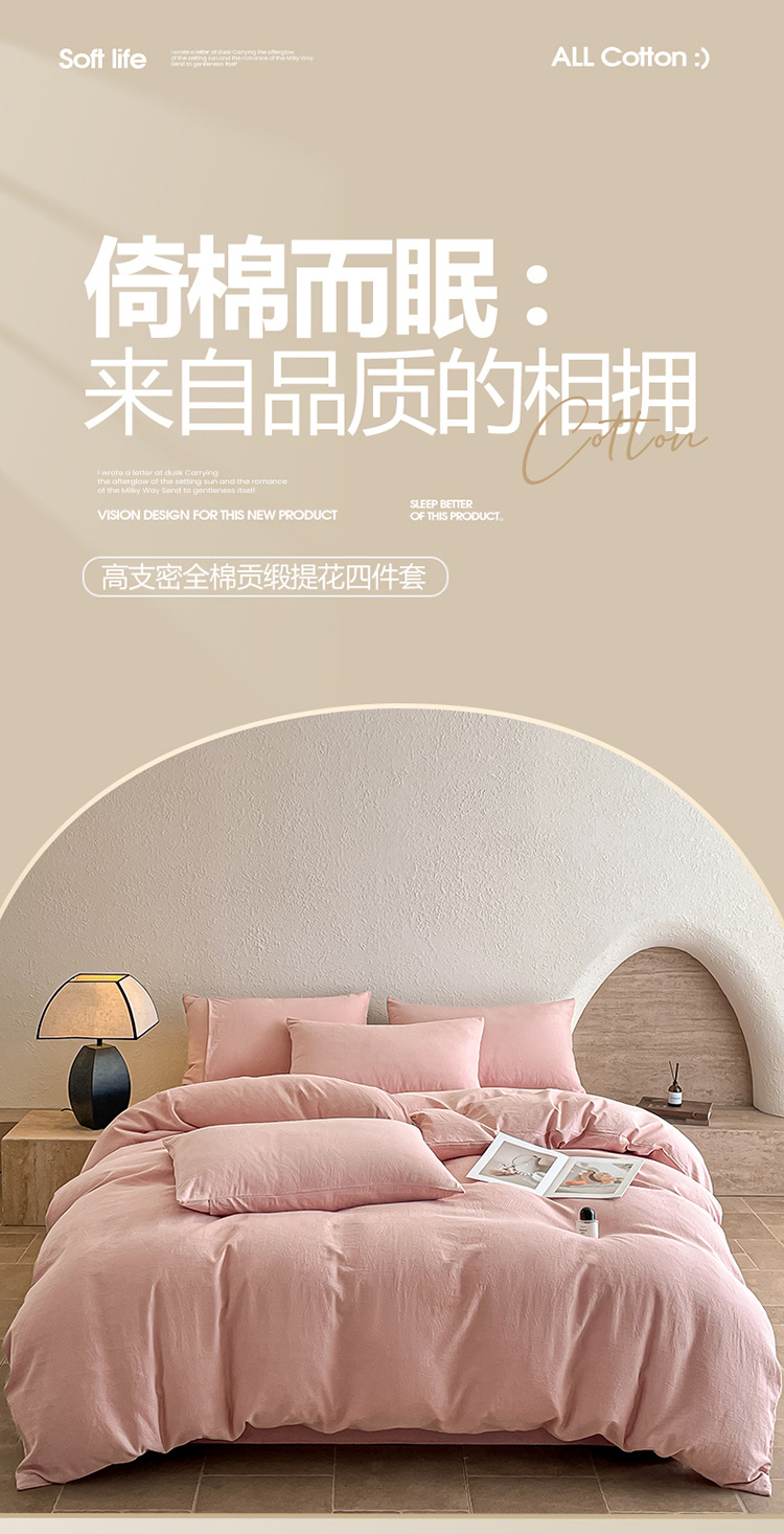 【天竺棉拼色四件套】拼色天竺棉纯棉针织棉四件套纯色拼色新疆天竺棉裸睡,白茶清欢,陌上春芽,香芋紫,紫粉+奶茶