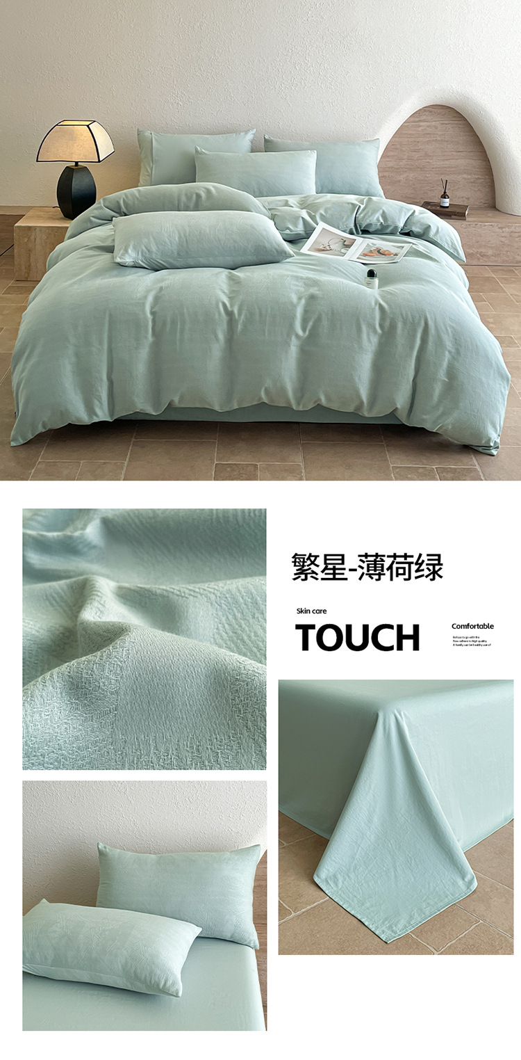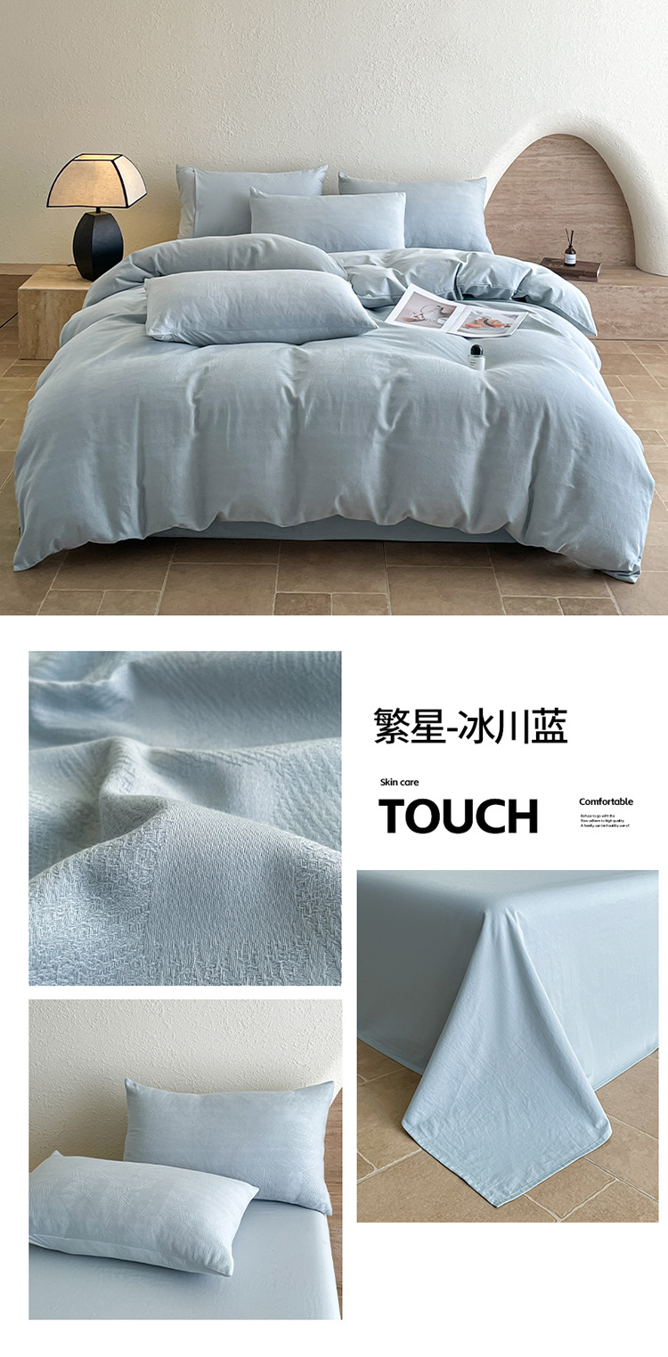 良品汇馆 2026【特价提花绣花四件套】A类提花四件套良品全棉床品件套纯色纯棉高端绣花四件套 繁星-冰川蓝