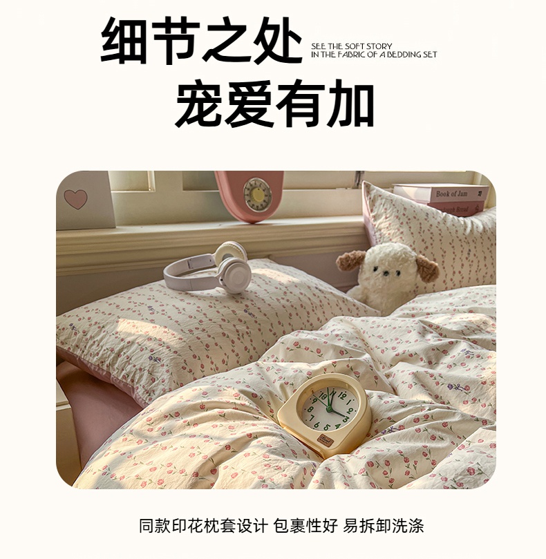 当前位置: 91家纺网 > 商品网购 > 床品套件 > 四件套 > 水洗棉四件套 > 思诺羽床笠 2026新款古法水洗仿棉云感棉三件套四件套 夏日初恋
