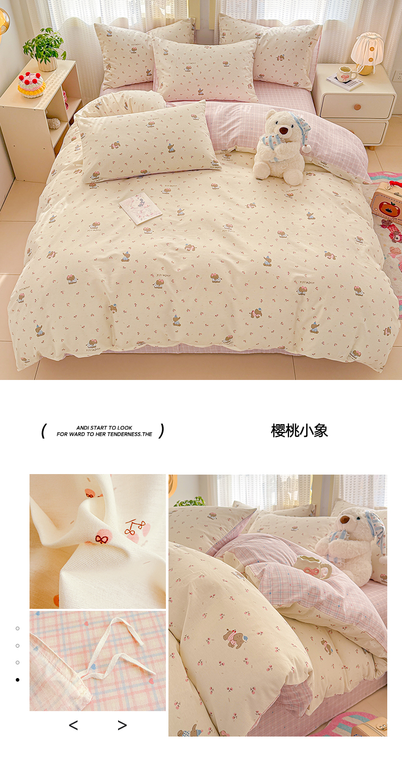 (总)呗旺鹿 2026新款全棉40支12868田园卡通小清新系列四件套,雅柔,蓝叶兔,软糖萌宠,三小只,童话乐园,小熊艺语,樱桃小象,H萝卜兔,L红茶兔兔,L欧包小奶兔,L浅糖兔叽