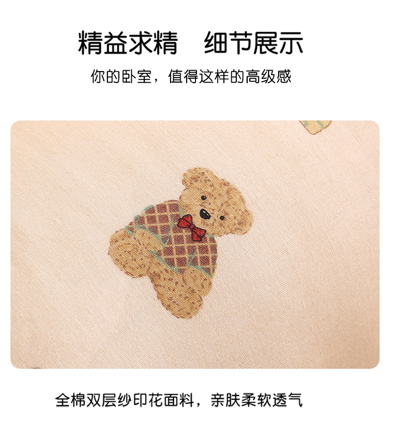 商品名称:蔻眠 2026全棉印花双层纱长抱枕夹腿抱枕长枕芯儿童学生成人枕头 抱抱熊