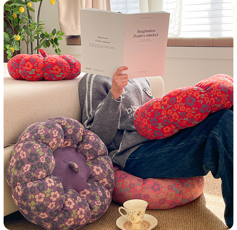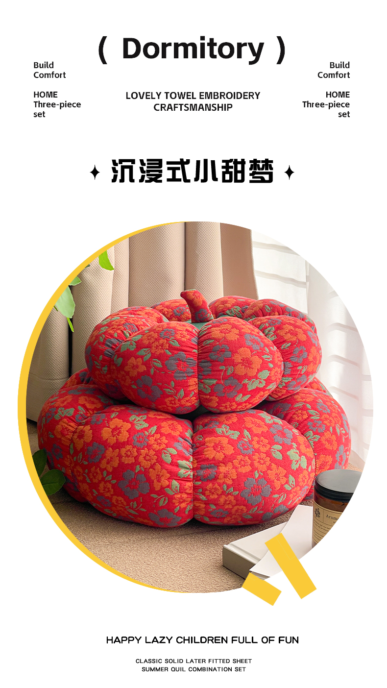 (总)亦帆枕芯 2026新款全棉多层纱南瓜坐垫抱枕榻榻米坐垫超柔软支撑,豆沙南瓜,红南瓜,紫南瓜