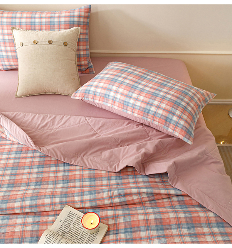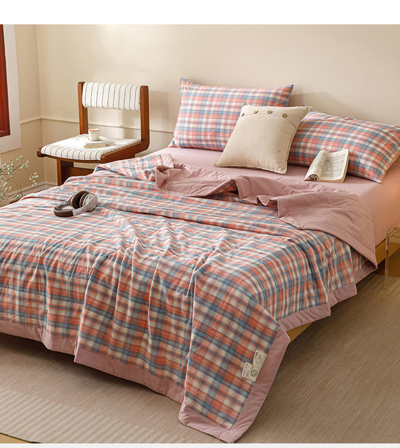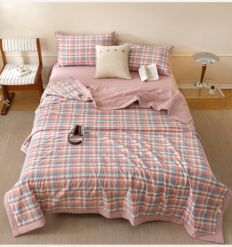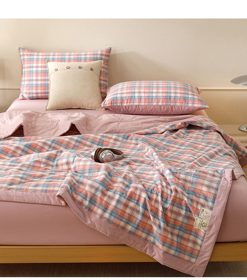 悦然毛巾被 2026新款全棉水洗棉夏被夏凉被空调被 暖格晚风粉
