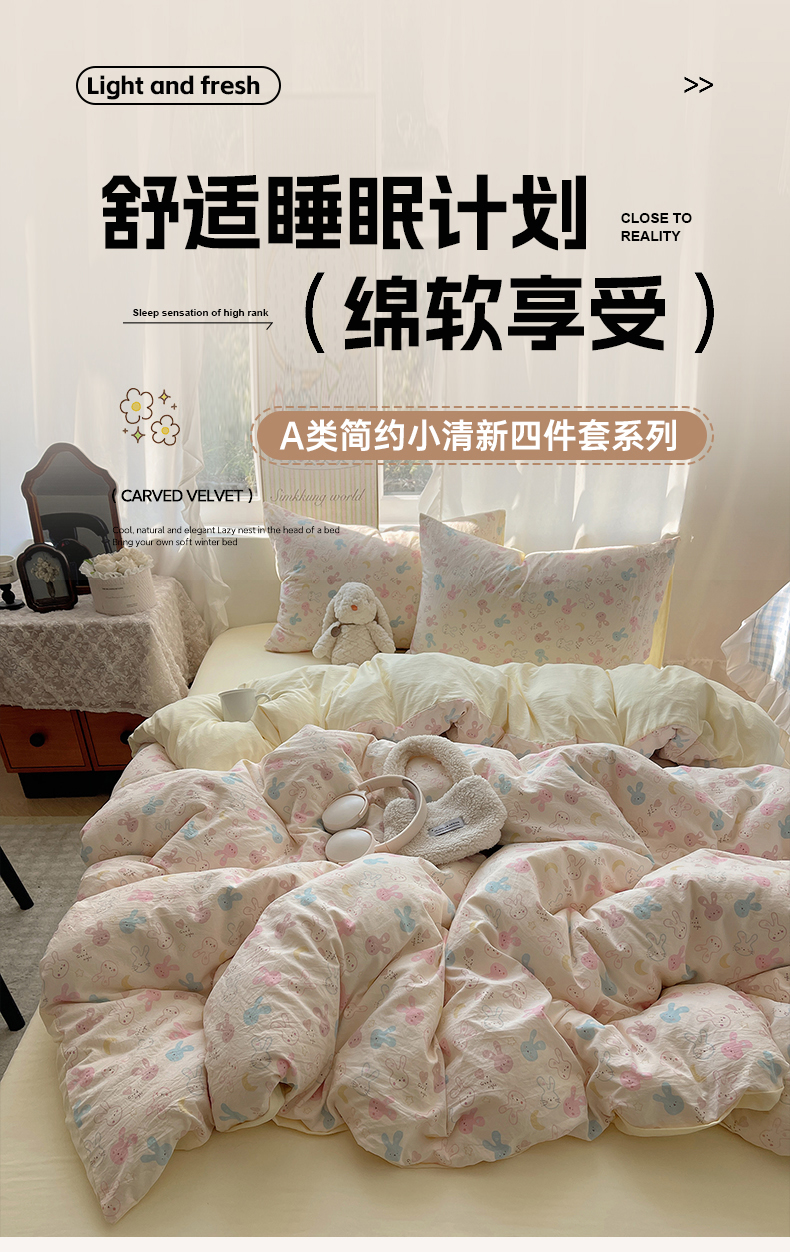当前位置: 91家纺网 > 商品网购 > 床品套件 > 四件套 > 水洗棉四件套 > 沐芷 2026 【提供买家秀】古法水洗仿棉A类四件套床上用品三件套被套被罩床笠款---第一波 兔耳朵