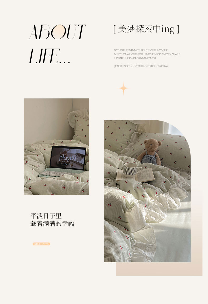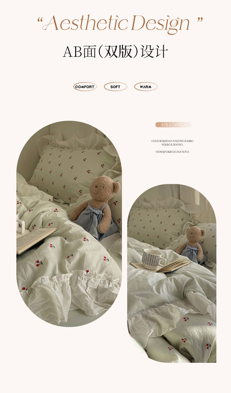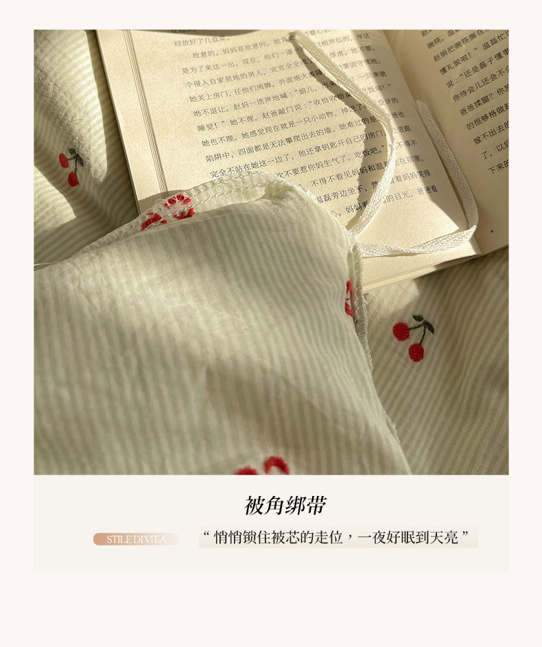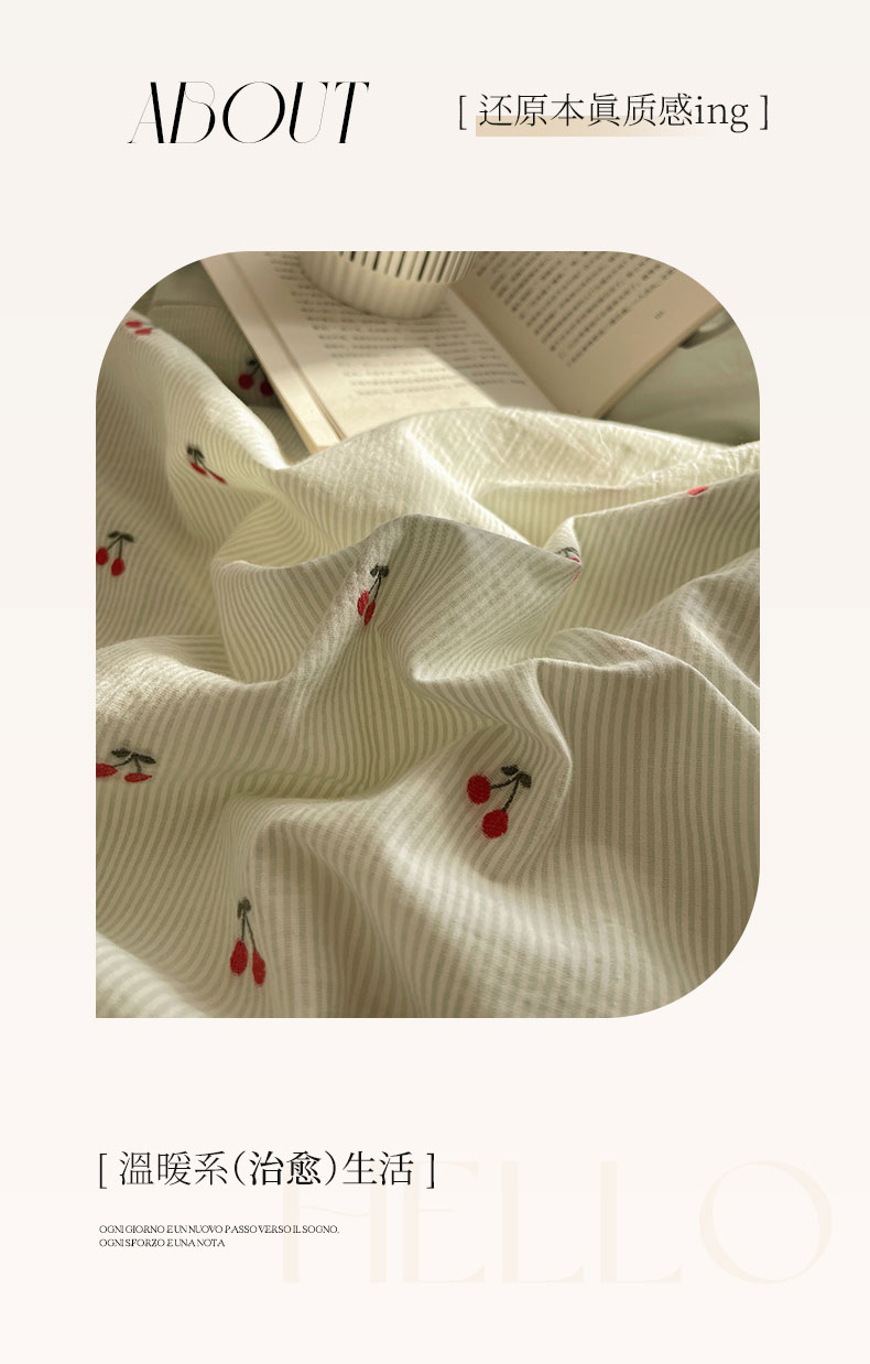 当前位置: 91家纺网 > 商品网购 > 床品套件 > 四件套 > 色织四件套 > 六巷胡同 2026新款韩系博主风60支色织提花小樱桃A类全棉水洗棉四件套 小樱桃-绿