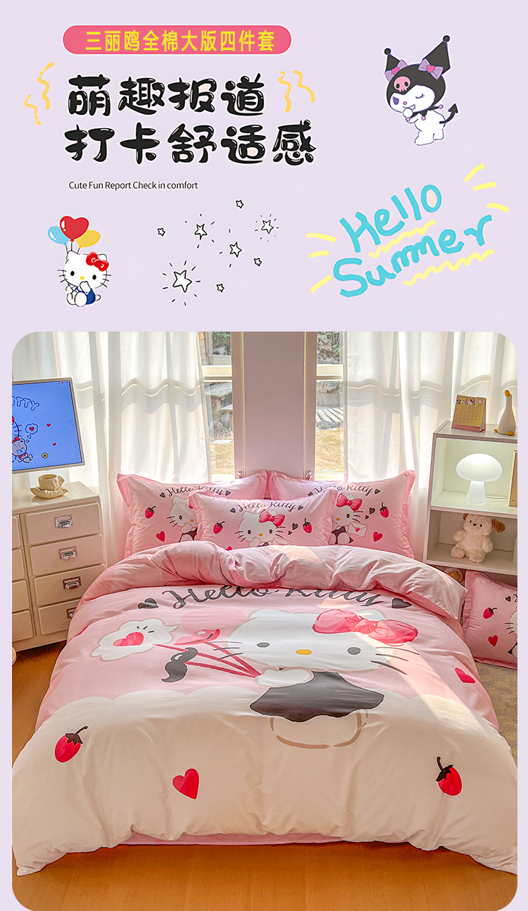 当前位置: 91家纺网 > 商品网购 > 床品套件 > 四件套 > 全棉普通四件套 > 浩诚 2026新款专版三丽鸥hellokitty库洛米正版授权大版全棉纯棉四件套 草莓KT
