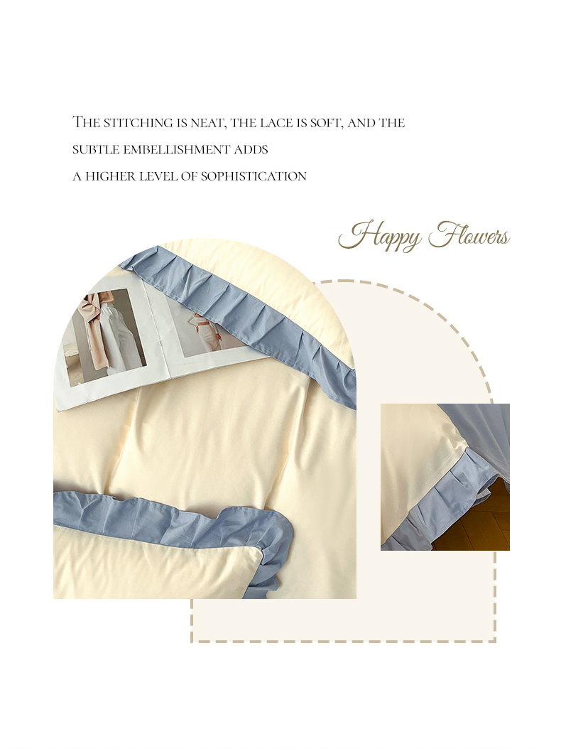 商品名称:艾迪尚家纺 2026新款法式韩版荷叶边纯色长绒棉单品枕套系列 冰川蓝香草白