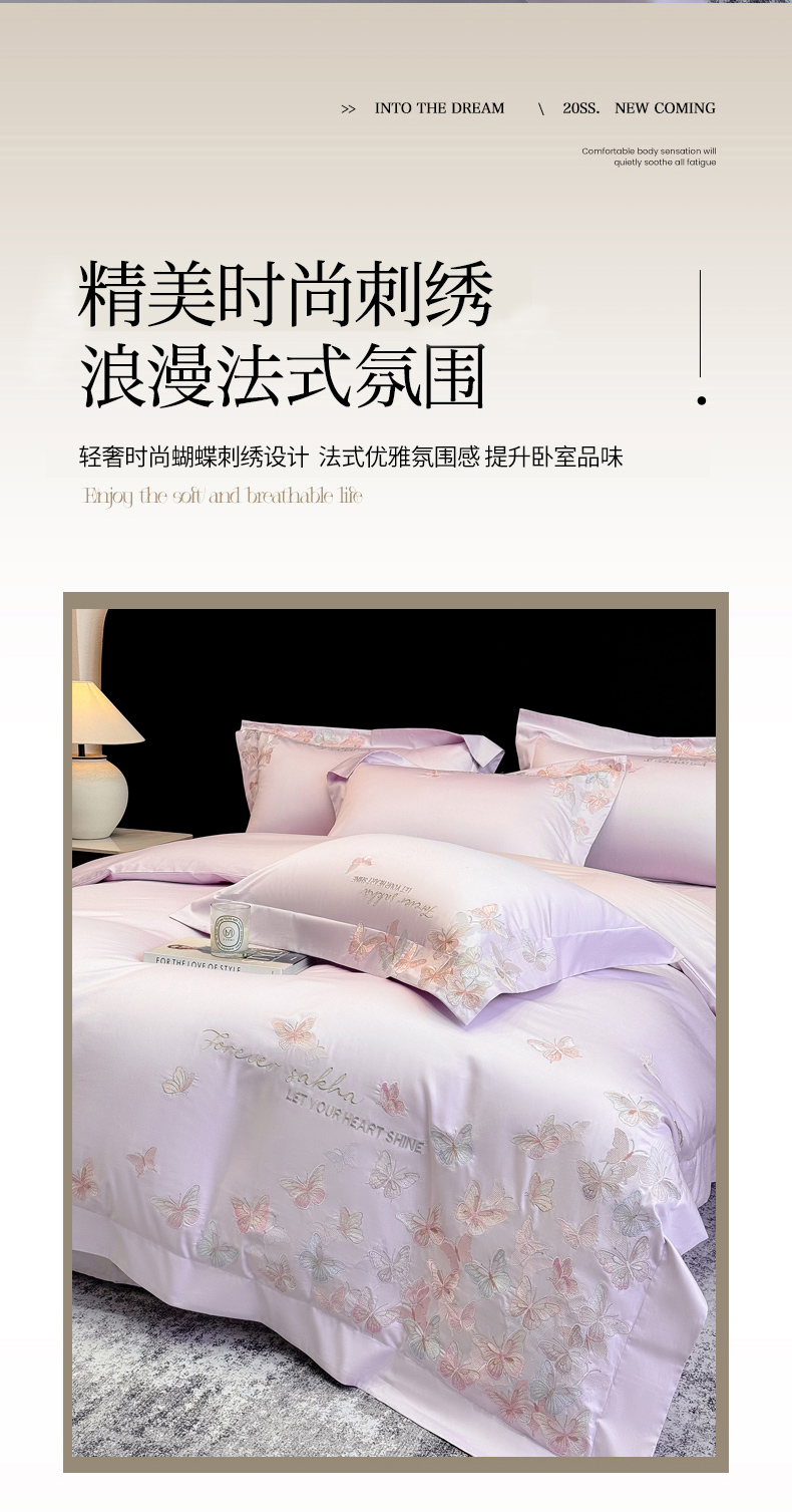 • 91家纺网 家纺一手货源 找家纺 (总)星蕴家纺 2026新款50贡缎长绒棉纯棉绣花四件套-花瑾,花瑾-邂逅粉,花瑾-晴山蓝,花瑾-梦幻紫,花瑾-清新绿