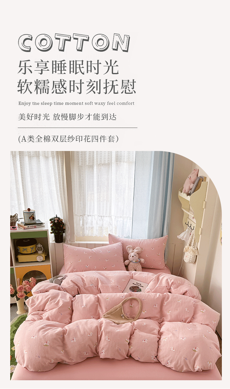 当前位置: 91家纺网 > 商品网购 > 床品套件 > 四件套 > 全棉普通四件套 > 爱思佳 2026新款全棉纯棉双层纱基款系列四件套 小白马