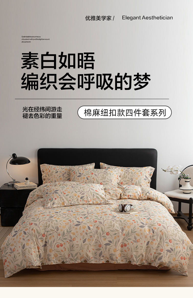 (总)女子家纺 2026新款棉麻纽扣款四件套
