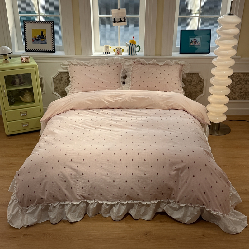 商品名称:觅糖家纺 2026新款全棉水洗棉色织提花四件套-樱桃甜梦(会员-5) 樱桃甜梦粉