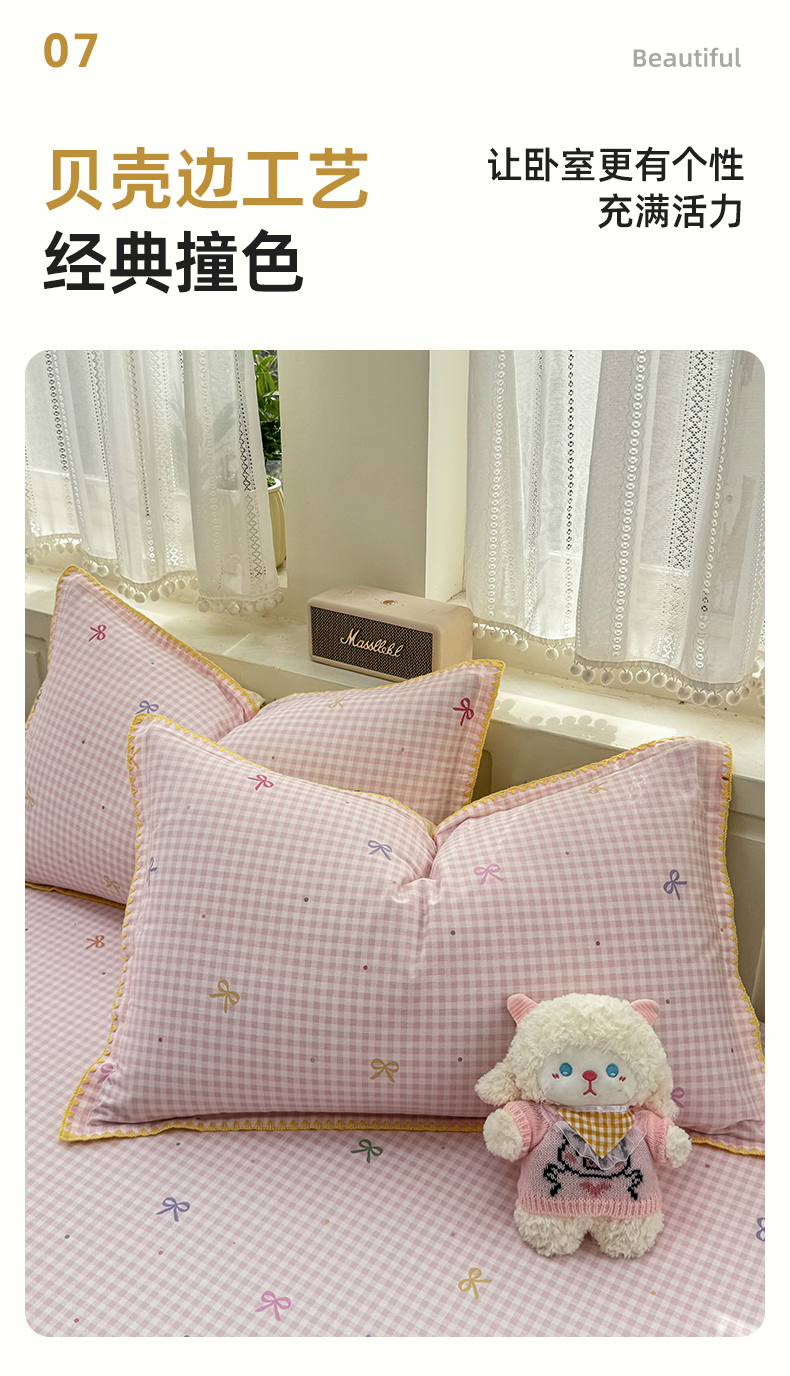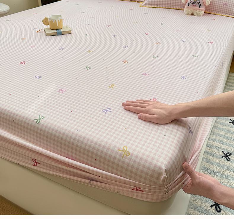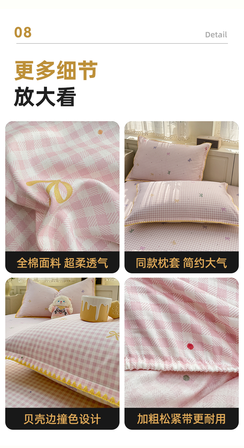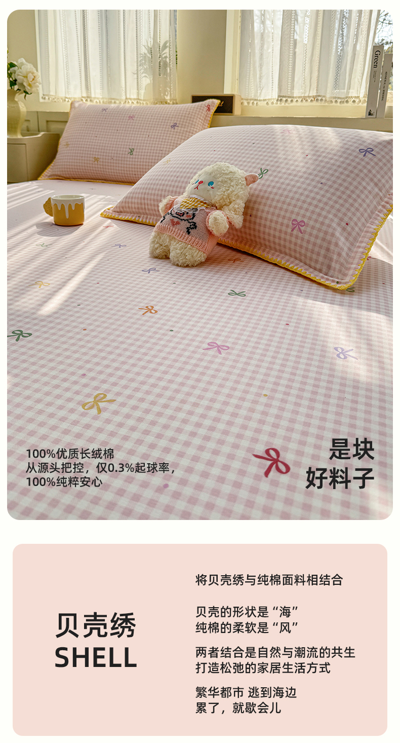 商品名称:浮光家居 2026新款全棉贝壳边纯棉单床笠系列2 夏日恋格粉