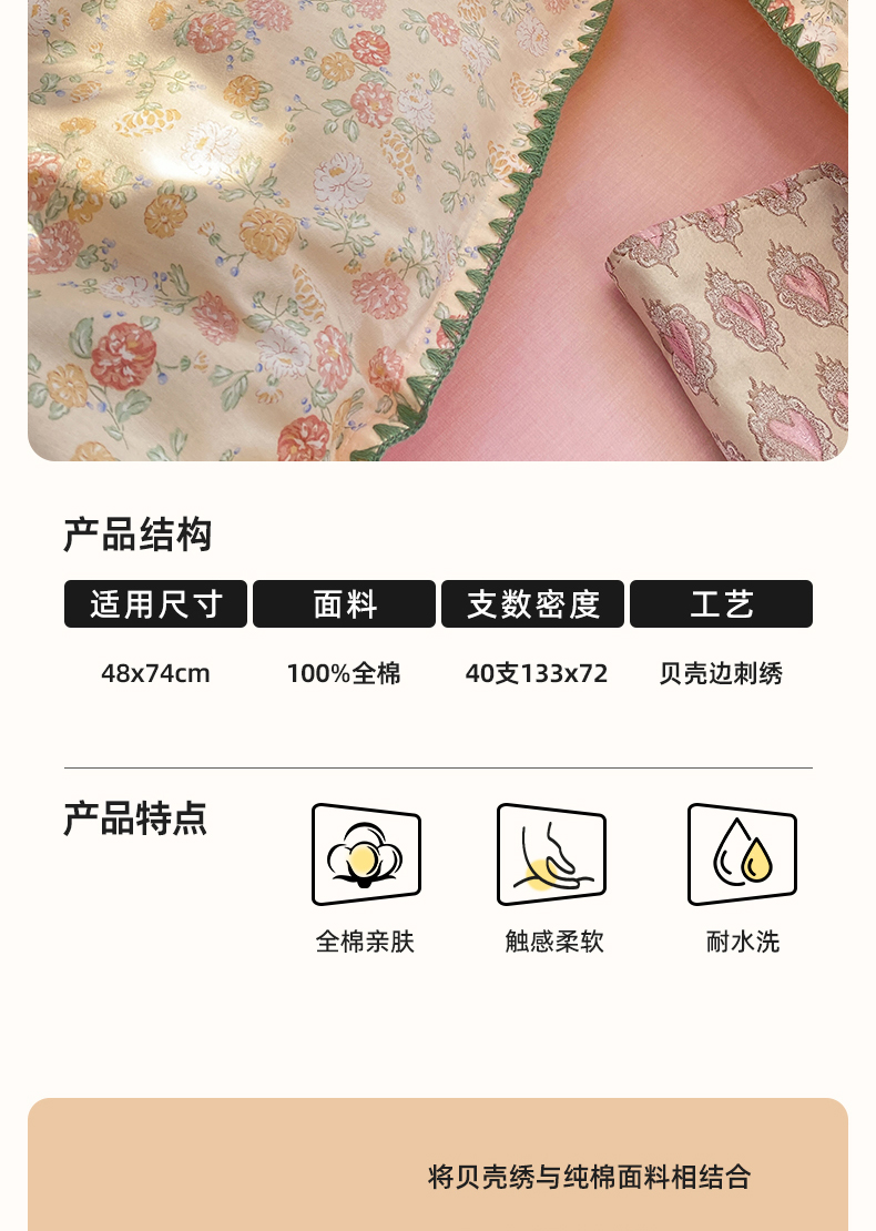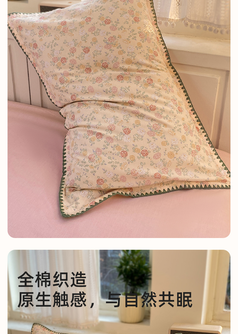 商品名称:浮光家居 2026新款全棉贝壳边纯棉单枕套系列2 爱丽花园