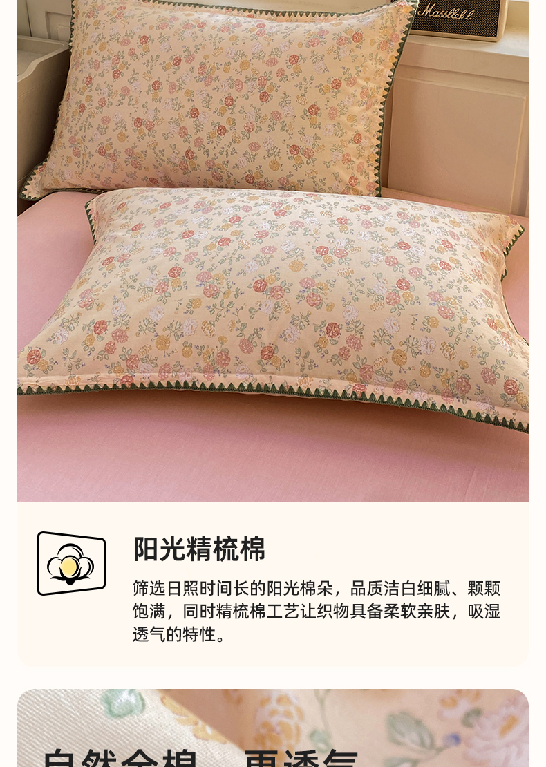 浮光家居 2026新款全棉贝壳边纯棉单枕套系列2 爱丽花园