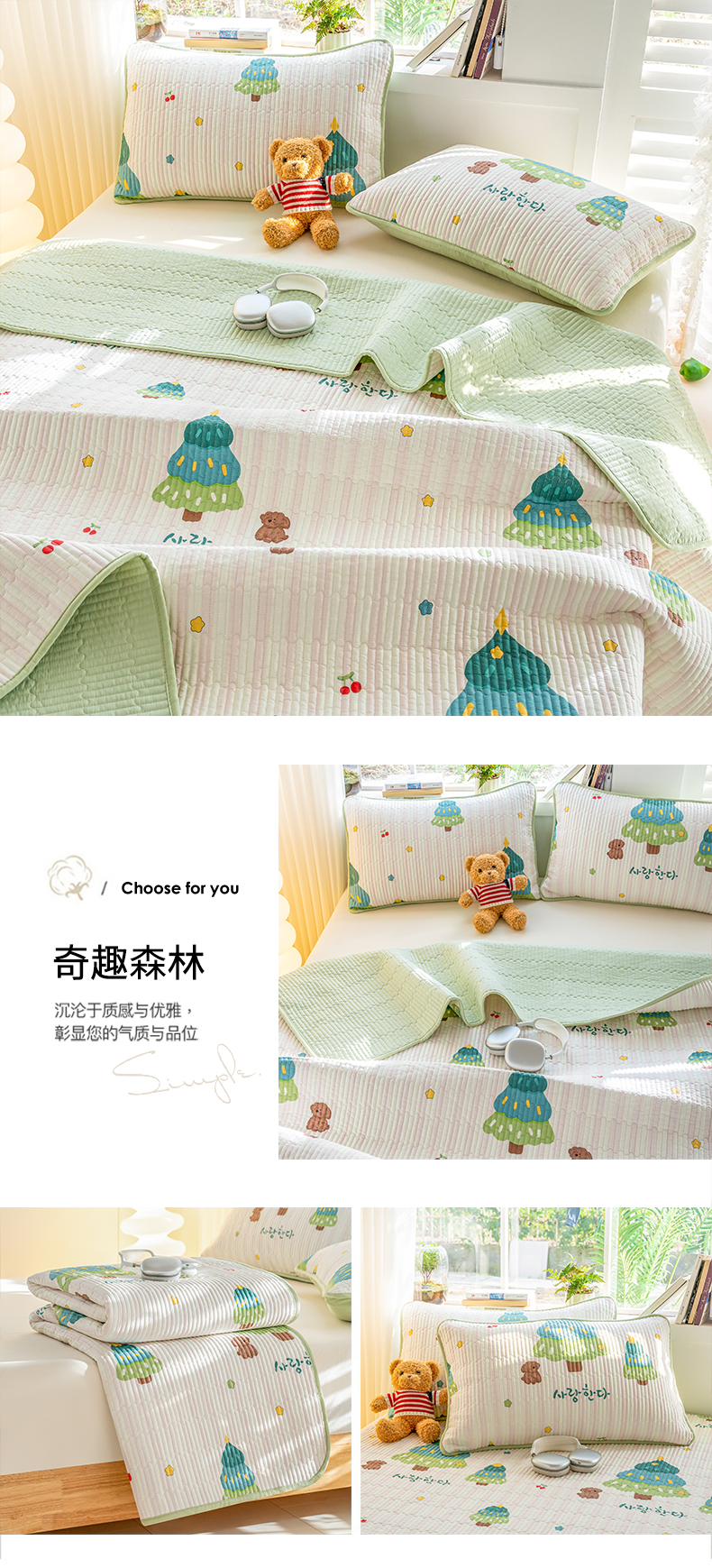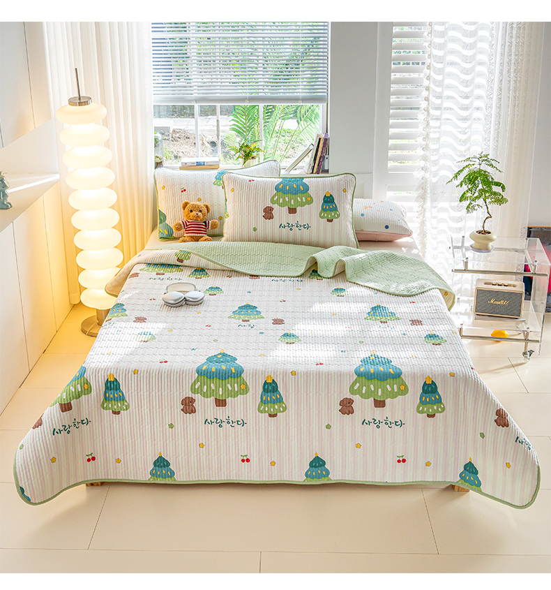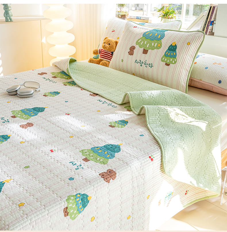 • 91家纺网 家纺一手货源 找家纺 X猫先生 2026新款全棉床盖小清新夹棉床单炕盖四季跑量款 奇趣森林