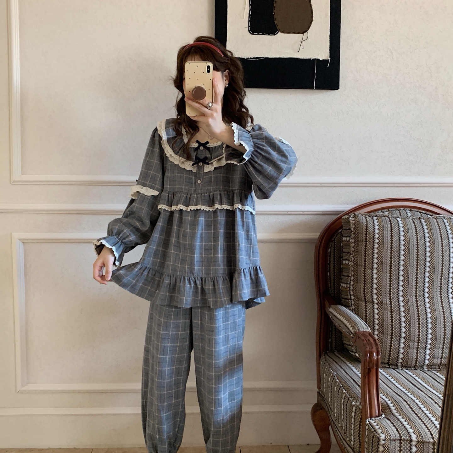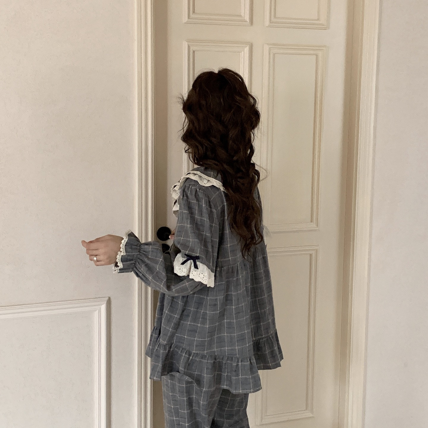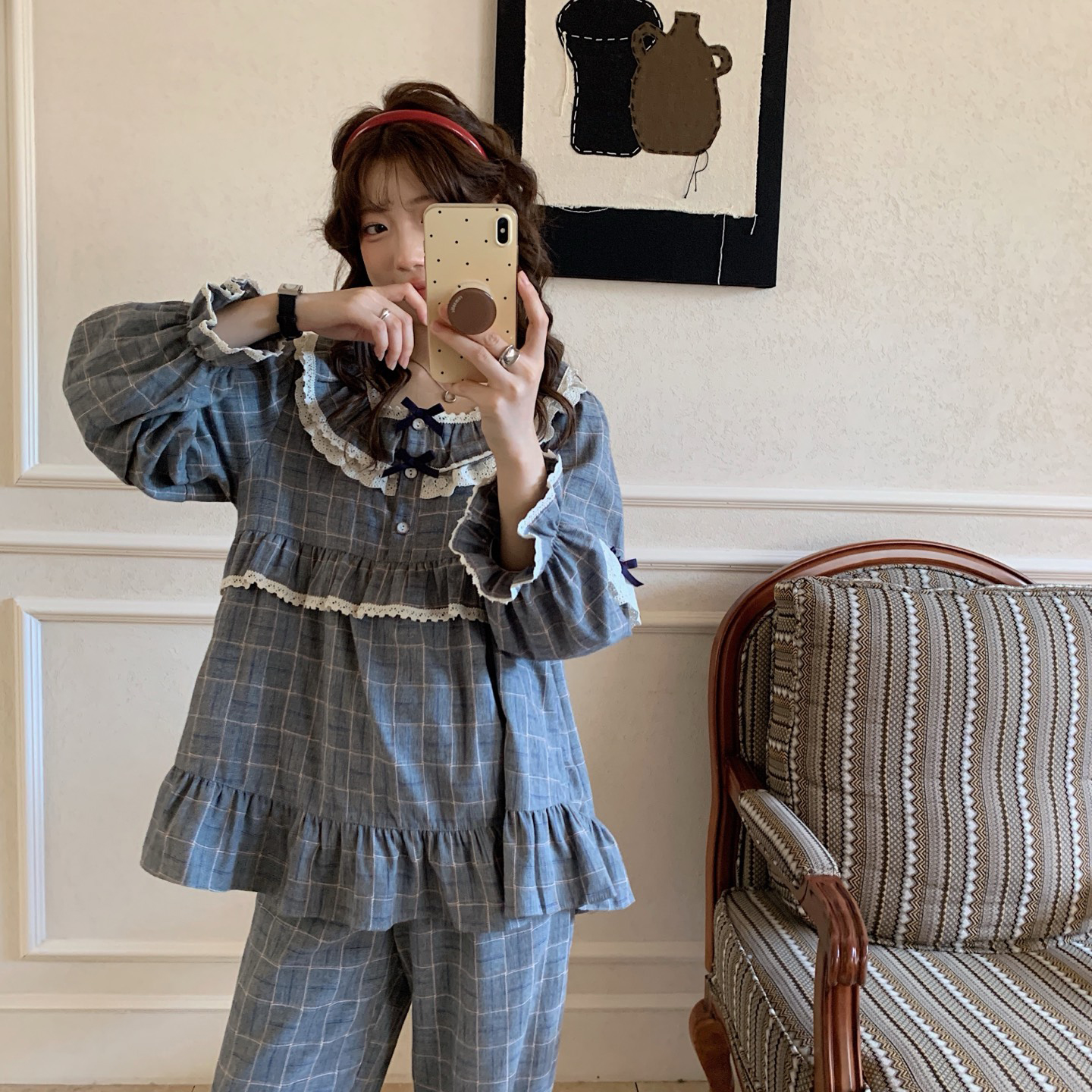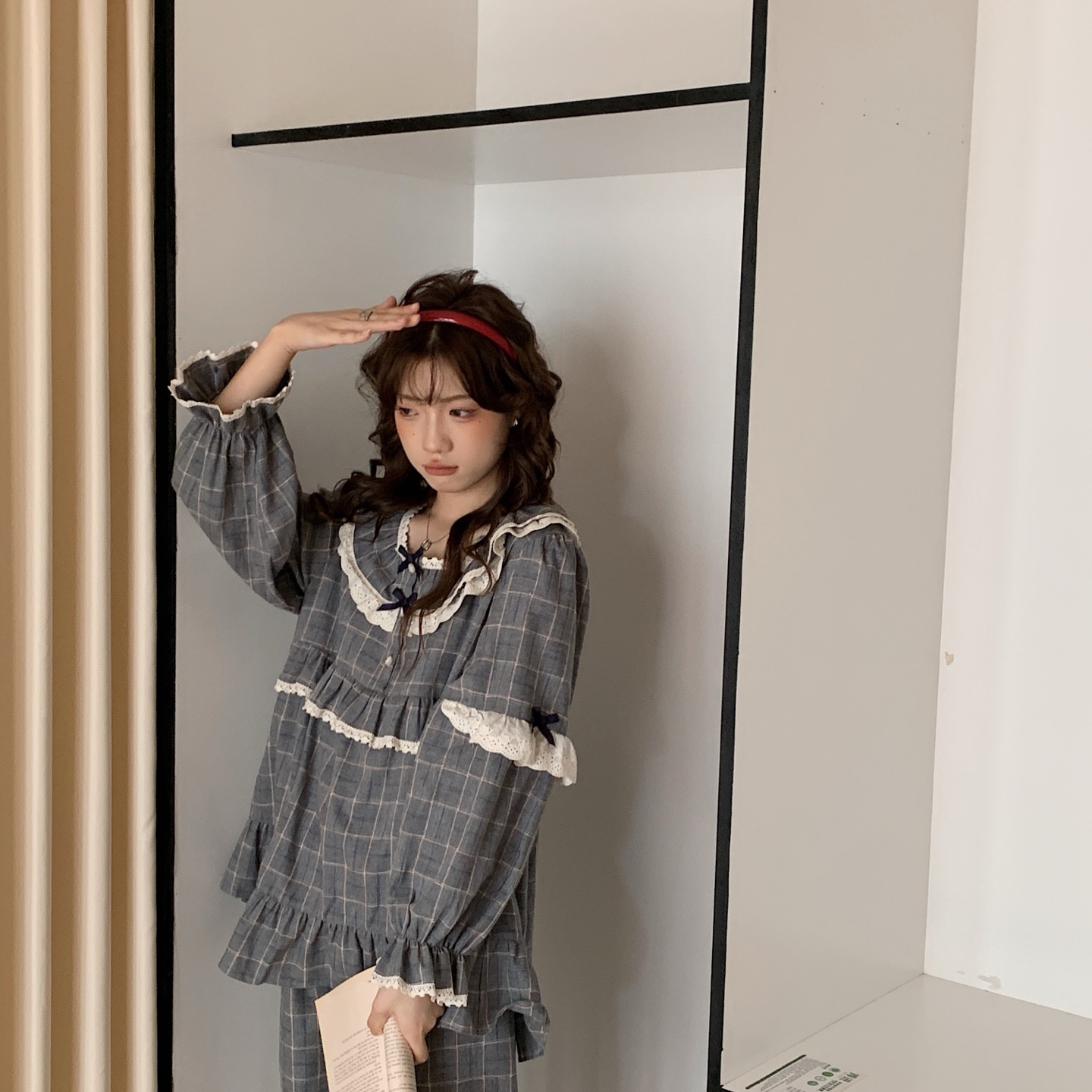 当前位置: 91家纺网 > 商品网购 > 居家日用 > 睡衣/家居服套装 > 妍景家居生活馆 2026新款韩系甜美蕾丝花边格子套装 红色