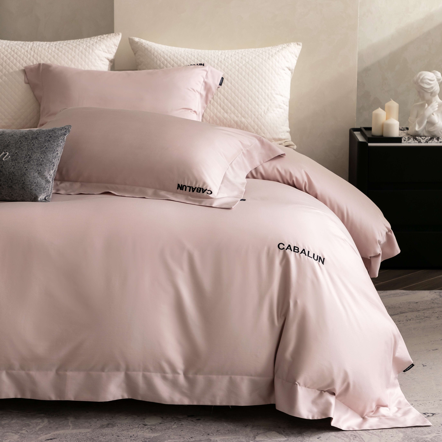 (总)卡巴伦2025新款60兰精天丝夏被四件套,晨露花园粉,晨露花园蓝