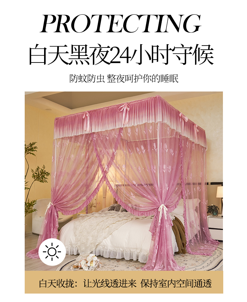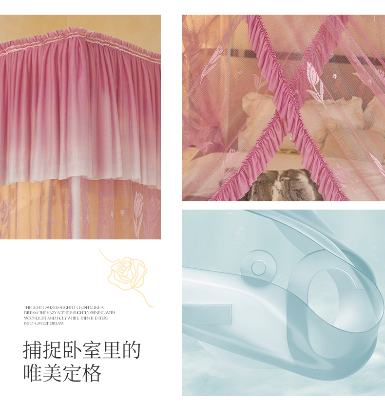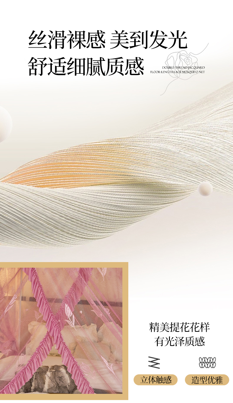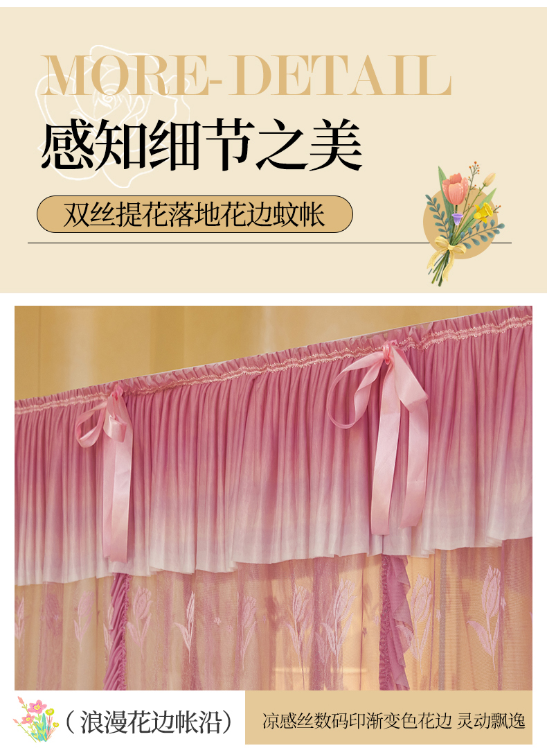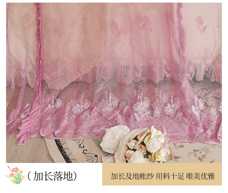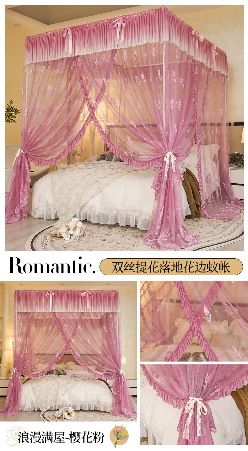 商品名称:世婕 2026新款双丝提花落地花边蚊帐-浪漫满屋 浪漫满屋-樱花粉