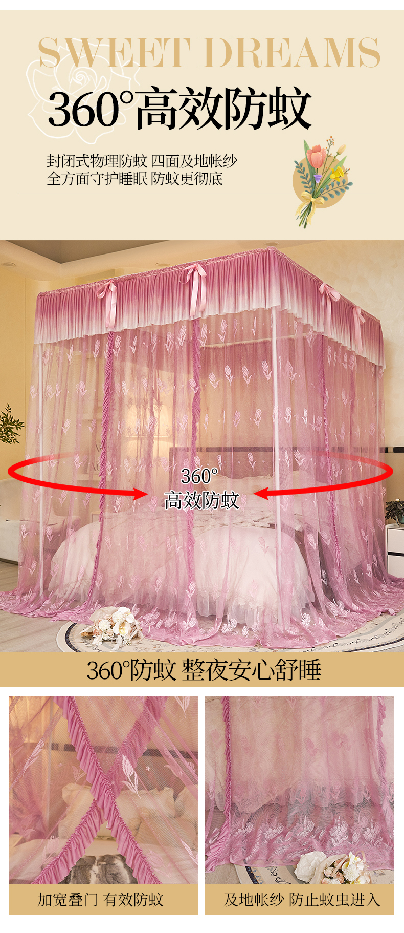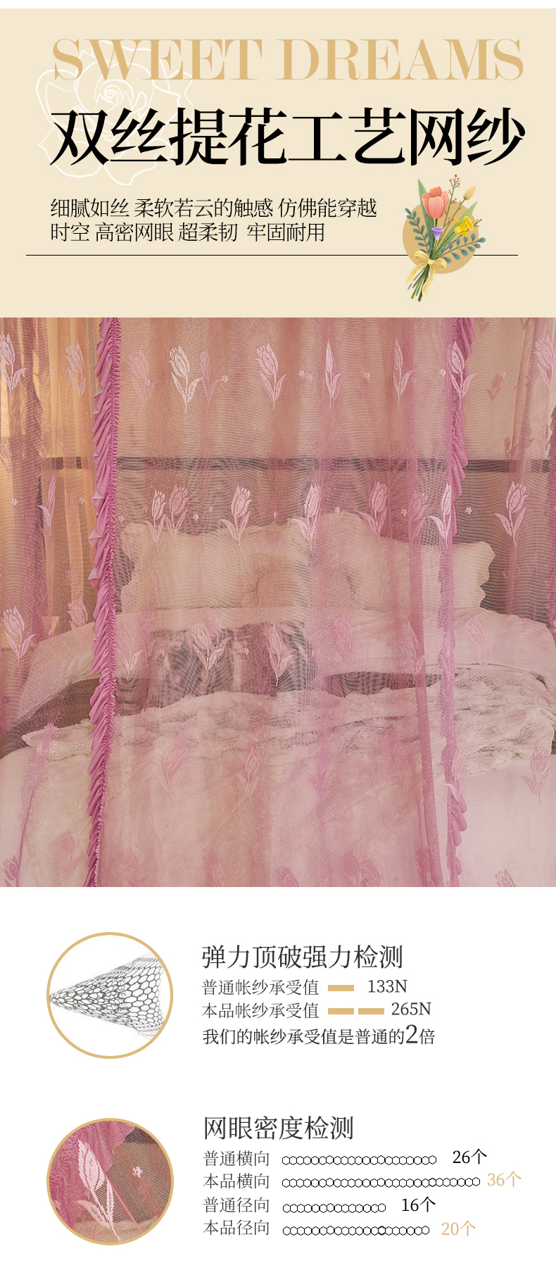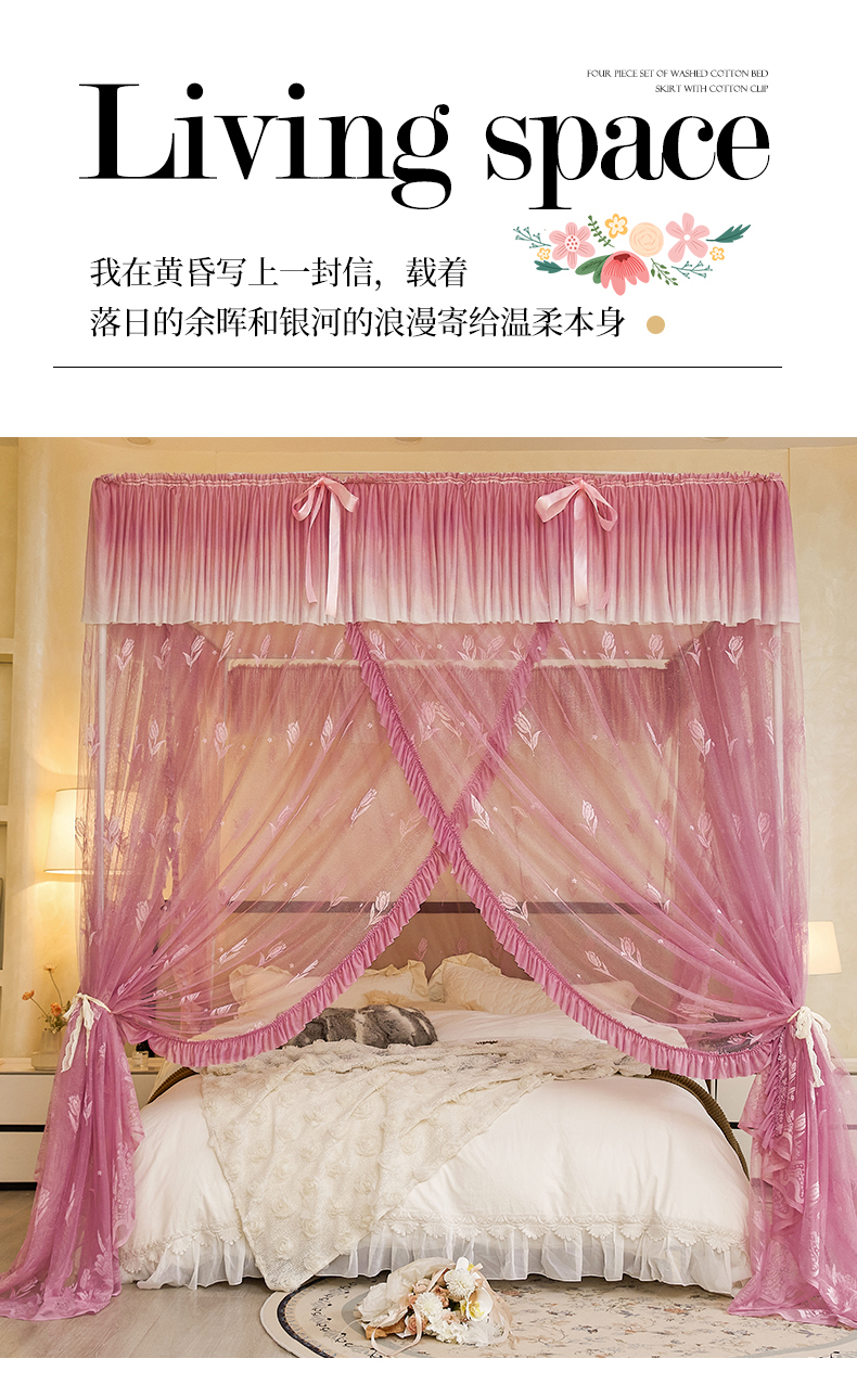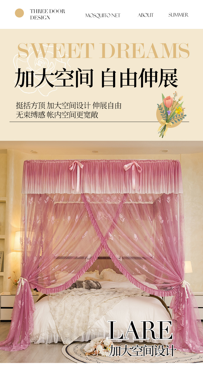 商品名称:世婕 2026新款双丝提花落地花边蚊帐-浪漫满屋 浪漫满屋-樱花粉