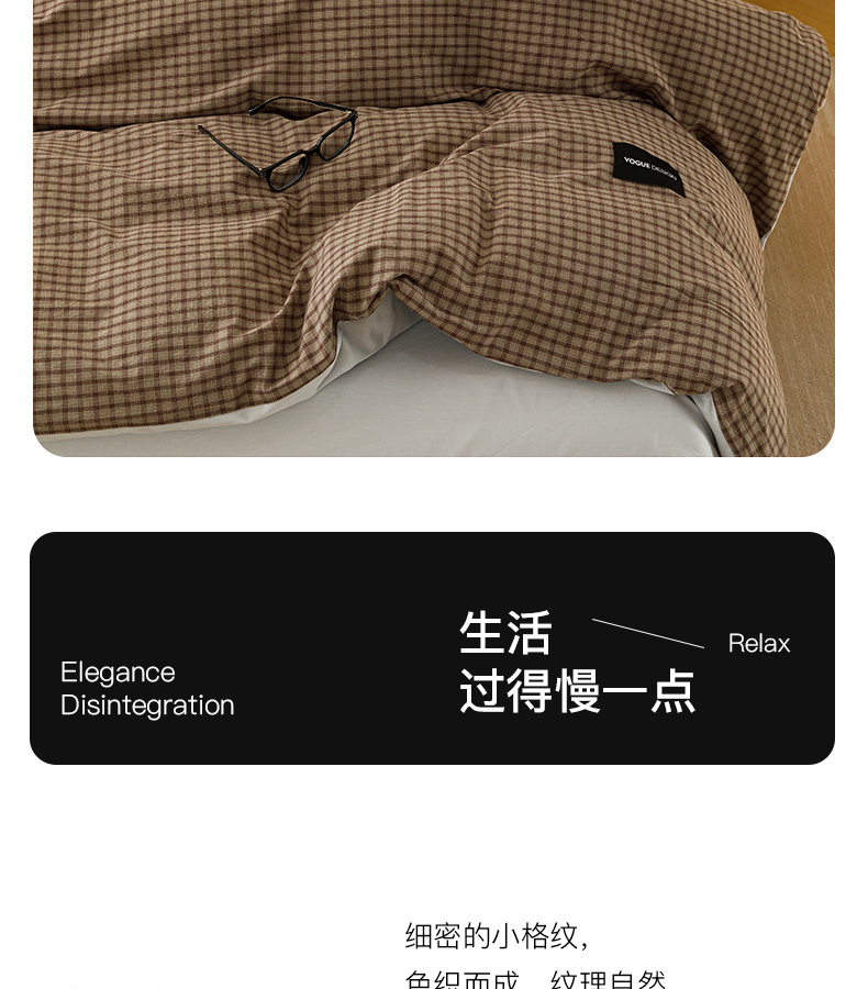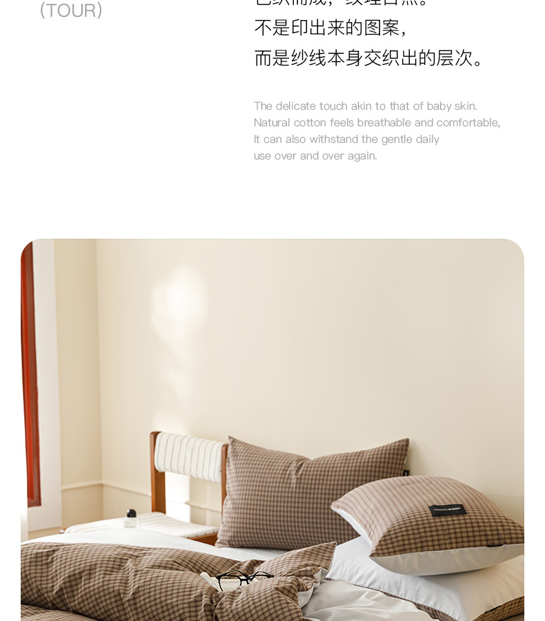 商品名称:卡姿家纺 2026春夏色织水洗棉无印复古风格 空野棕