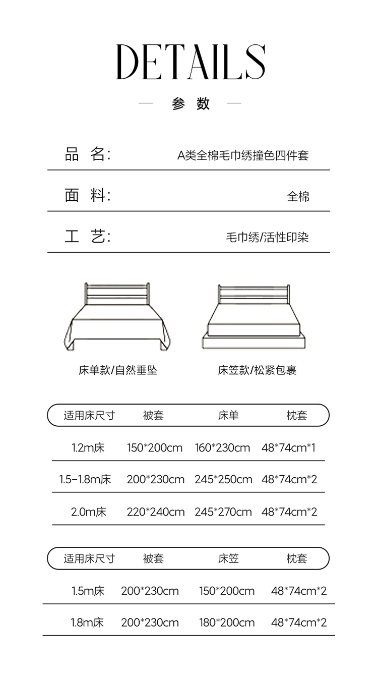 [{"sp_id":11,"sp_name":"\u989c\u8272","sp_format":2,"sp_list":[{"sp_value_id":1665,"sp_value_name":"\u6d77\u5929\u84dd+\u94f6\u7ffc\u7070","sp_value_image":{"id":999,"path":"https:\/\/img3.91jf.com\/ghelp\/2026\/20260125\/20260125134140_437073.jpg"},"sp_value_video":{"id":0,"img":"","path":"","time":0,"download_num":0,"play_num":0},"price":"80.00","storage":2500,"weight":"2.100","is_check_weight":0,"plus_price":"","sp_sort":0}]},{"sp_id":10,"sp_name":"\u5c3a\u5bf8","sp_format":1,"sp_list":[{"sp_value_id":41,"sp_value_name":"1.2m\u5e8a\u5355\u6b3e\u4e09\u4ef6\u5957","sp_value_image":{"id":0,"path":""},"sp_value_video":{"id":0,"img":"","path":"","time":0,"download_num":0,"play_num":0},"price":"80.00","storage":0,"weight":"2.100","is_check_weight":0,"plus_price":"","sp_sort":5},{"sp_value_id":42,"sp_value_name":"1.5m\u5e8a\u5355\u6b3e\u56db\u4ef6\u5957","sp_value_image":{"id":0,"path":""},"sp_value_video":{"id":0,"img":"","path":"","time":0,"download_num":0,"play_num":0},"price":"115.00","storage":500,"weight":"2.300","is_check_weight":0,"plus_price":"","sp_sort":6},{"sp_value_id":43,"sp_value_name":"1.8m\u5e8a\u5355\u6b3e\u56db\u4ef6\u5957","sp_value_image":{"id":0,"path":""},"sp_value_video":{"id":0,"img":"","path":"","time":0,"download_num":0,"play_num":0},"price":"115.00","storage":500,"weight":"2.300","is_check_weight":0,"plus_price":"","sp_sort":7},{"sp_value_id":44,"sp_value_name":"2.0m\u5e8a\u5355\u6b3e\u56db\u4ef6\u5957","sp_value_image":{"id":0,"path":""},"sp_value_video":{"id":0,"img":"","path":"","time":0,"download_num":0,"play_num":0},"price":"125.00","storage":500,"weight":"2.500","is_check_weight":0,"plus_price":"","sp_sort":8},{"sp_value_id":45,"sp_value_name":"1.5m\u5e8a\u7b20\u6b3e\u56db\u4ef6\u5957","sp_value_image":{"id":0,"path":""},"sp_value_video":{"id":0,"img":"","path":"","time":0,"download_num":0,"play_num":0},"price":"125.00","storage":500,"weight":"2.800","is_check_weight":0,"plus_price":"","sp_sort":9},{"sp_value_id":736,"sp_value_name":"1.8m\u5e8a\u7b20\u6b3e\u56db\u4ef6\u5957","sp_value_image":{"id":0,"path":""},"sp_value_video":{"id":0,"img":"","path":"","time":0,"download_num":0,"play_num":0},"price":"125.00","storage":500,"weight":"2.800","is_check_weight":0,"plus_price":"","sp_sort":10}]}]
