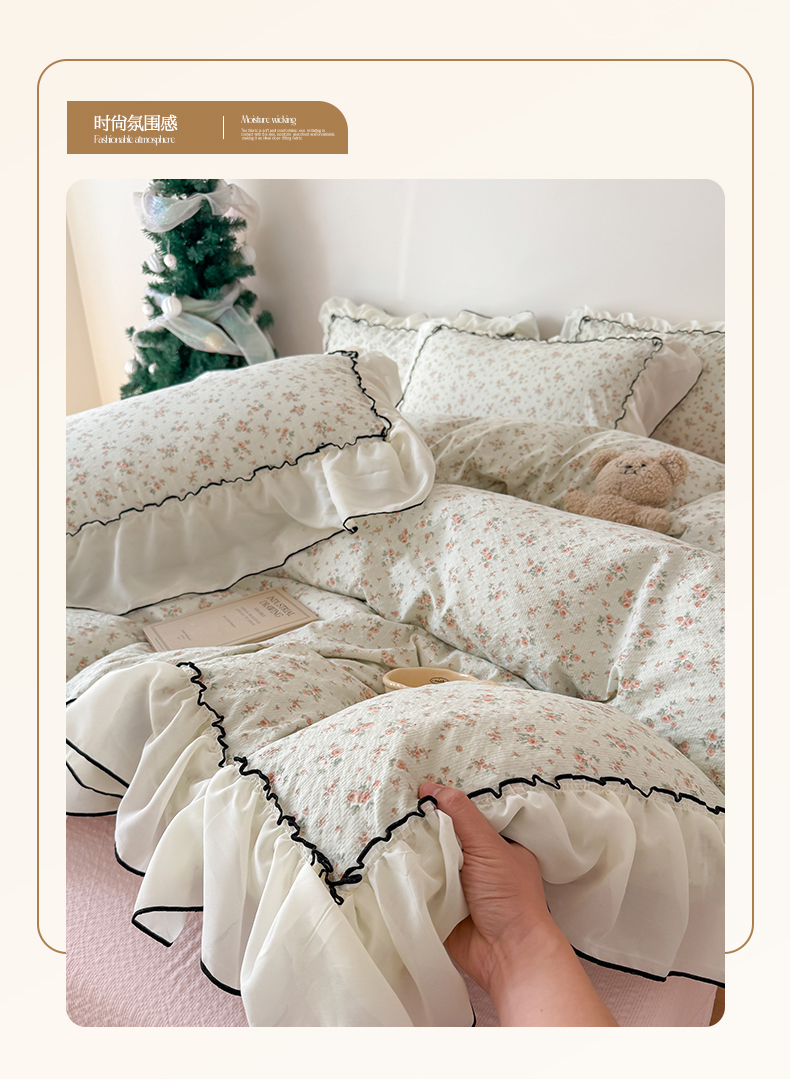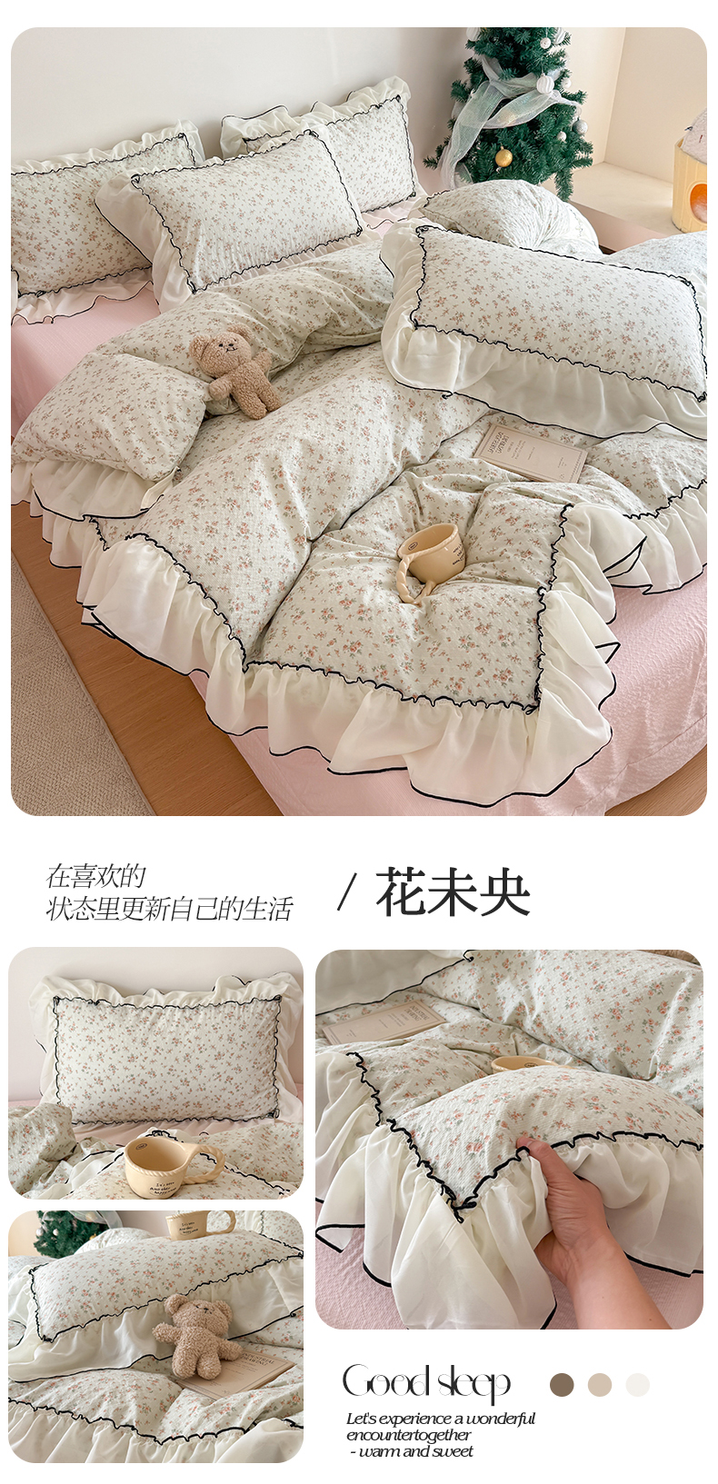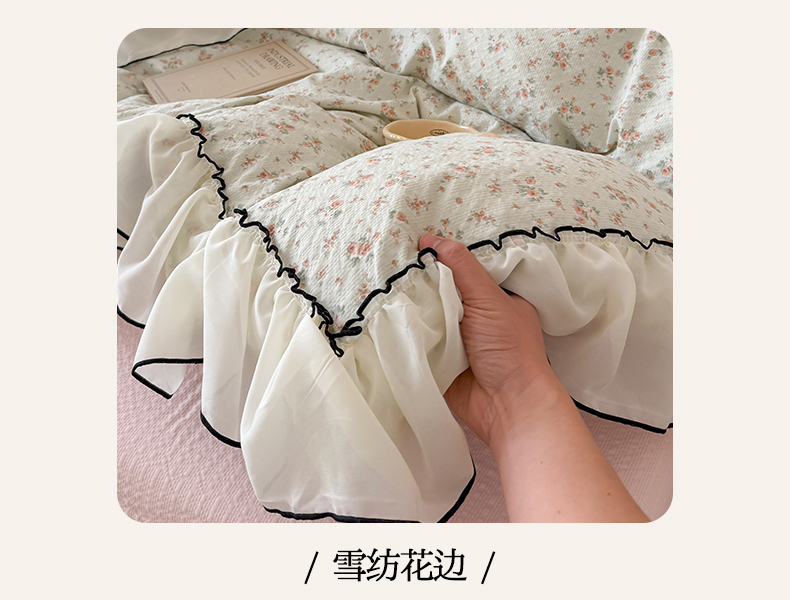 商品名称:吾欢心 2026春夏新款韩版雪纺花边泡芙双层纱四件套 猫咪乐园