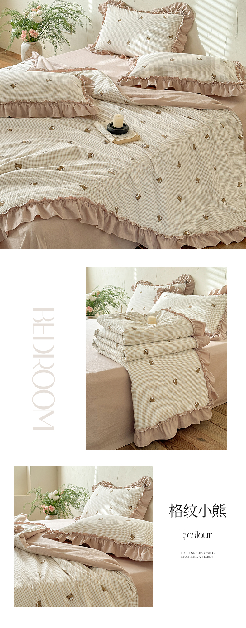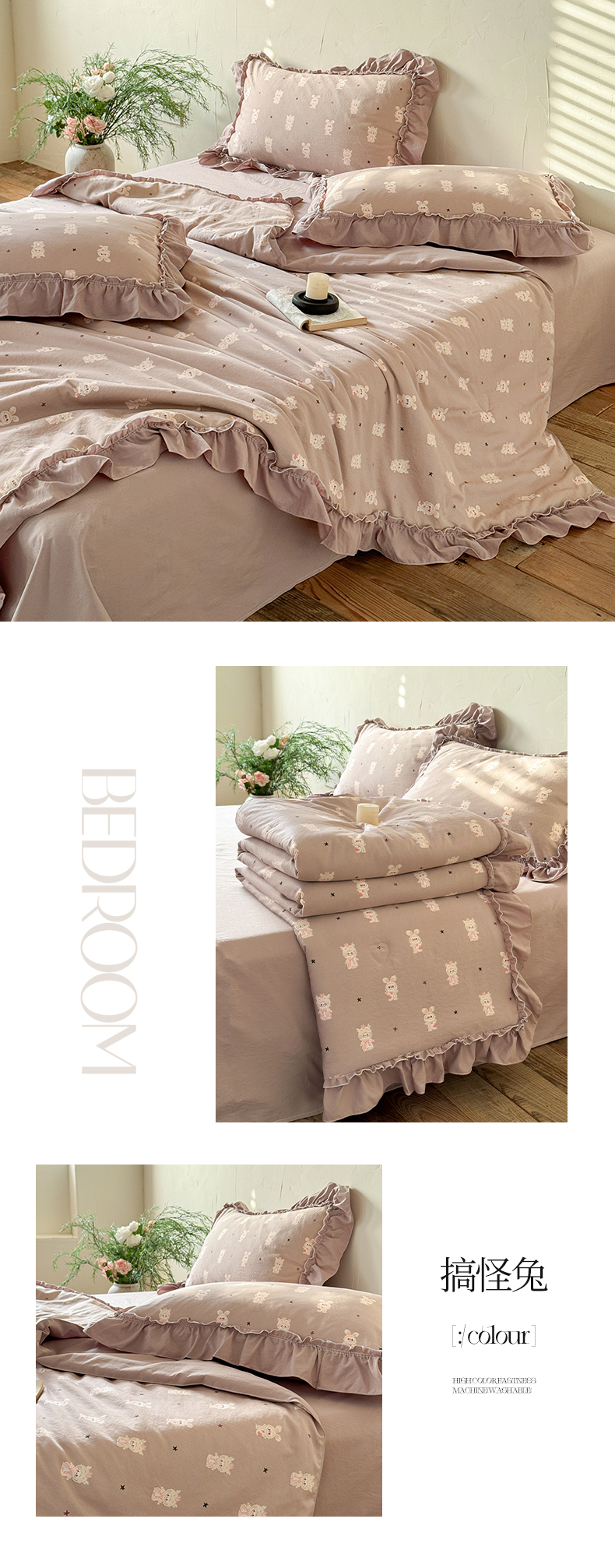 (总)迷尚家居 2026新款云朵棉印花花边夏被四件套,巴黎春天,车厘子,搞怪兔,格纹小熊,狗狗家族,蝴蝶结咖,简韵,凯蒂猫粉,凯蒂猫咖,南烟,七分甜,软萌兔蓝,甜桔,午后时光,惜花,线条猫,小柠檬,星星人,知否