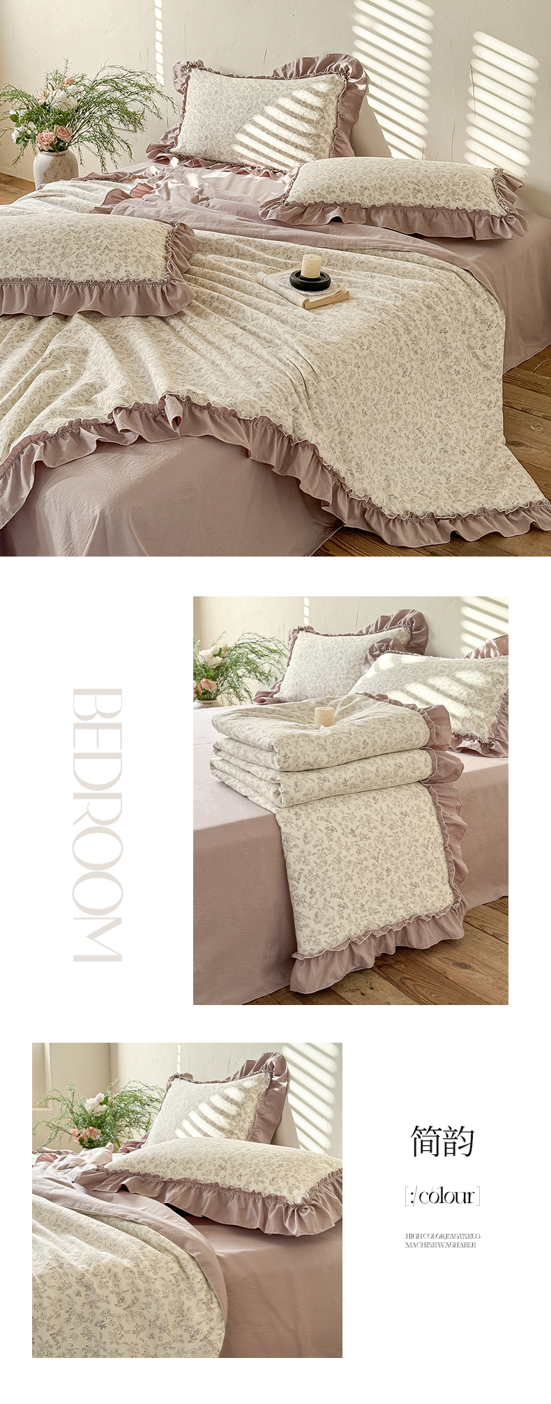 • 91家纺网 家纺一手货源 找家纺 迷尚家居 2026新款云朵棉印花花边夏被四件套 车厘子