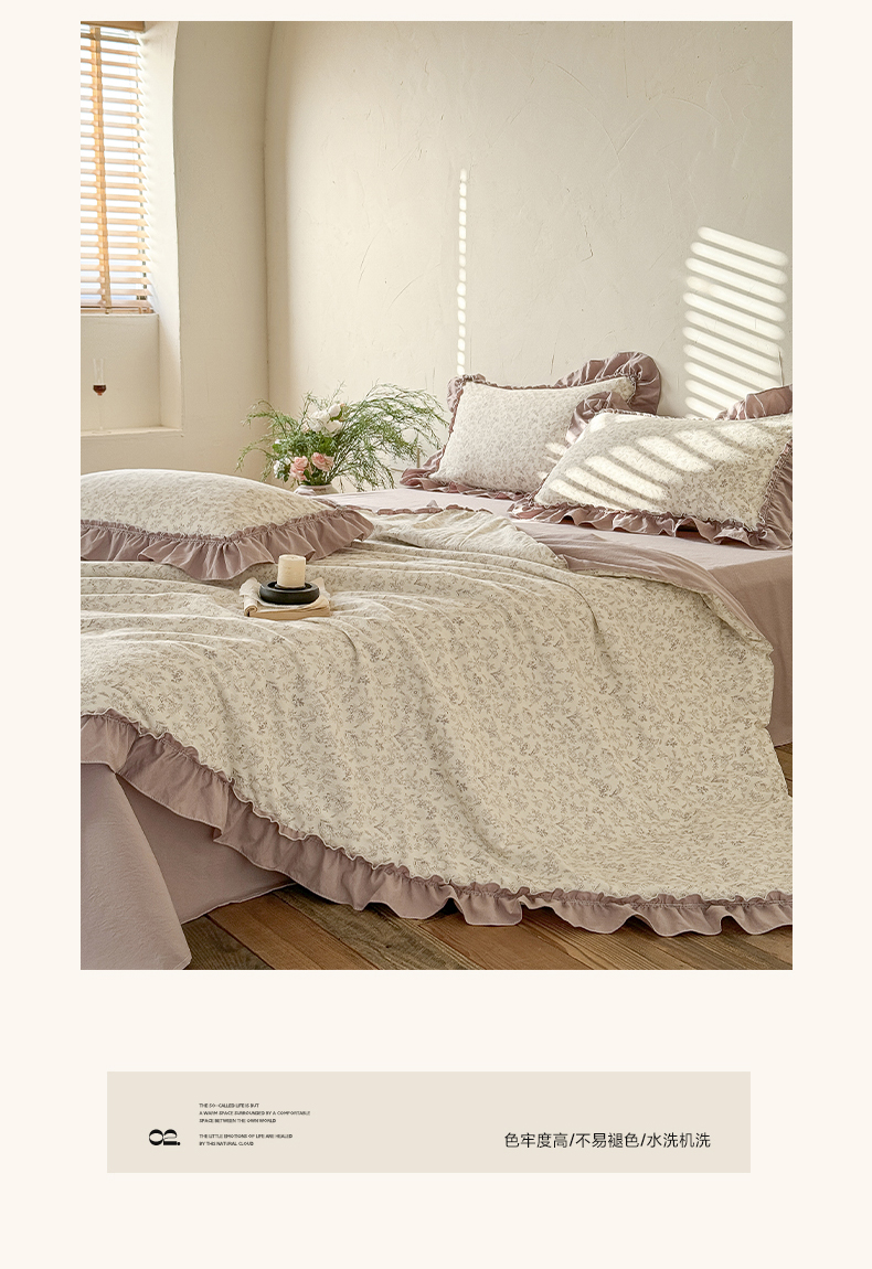 • 91家纺网 家纺一手货源 找家纺 迷尚家居 2026新款云朵棉印花花边夏被四件套 惜花