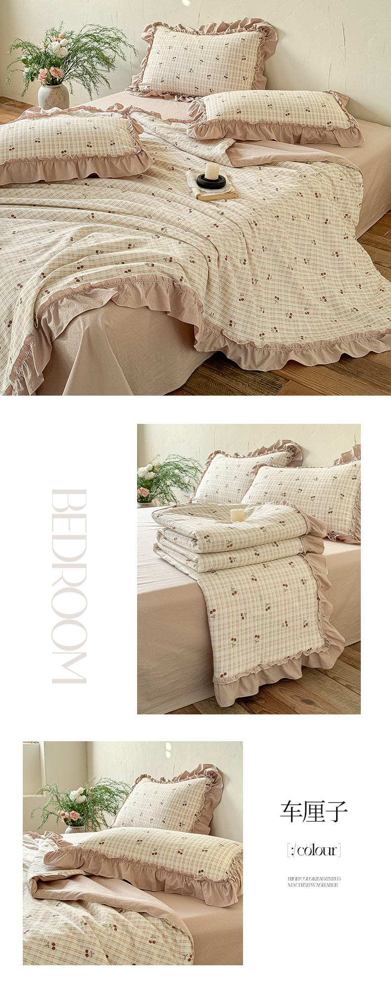 (总)迷尚家居 2026新款云朵棉印花花边夏被四件套,巴黎春天,车厘子,搞怪兔,格纹小熊,狗狗家族,蝴蝶结咖,简韵,凯蒂猫粉,凯蒂猫咖,南烟,七分甜,软萌兔蓝,甜桔,午后时光,惜花,线条猫,小柠檬,星星人,知否
