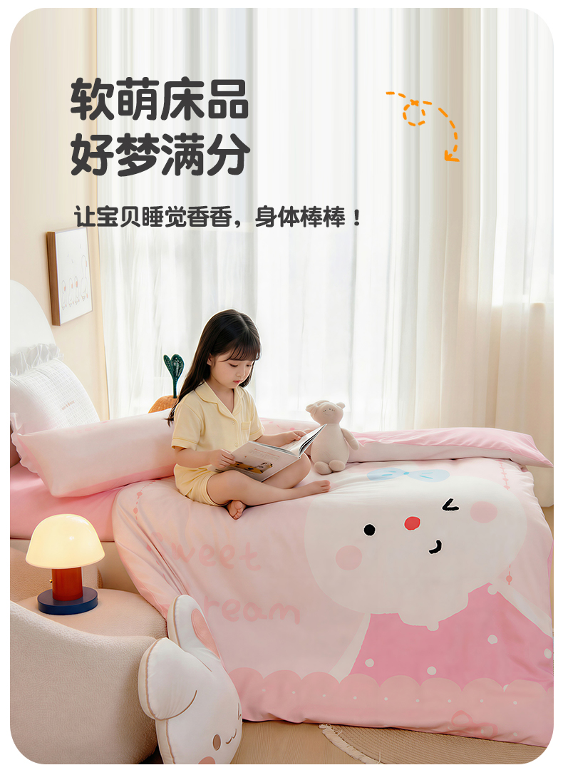 婴童用品 > 婴童三件套 > 绒梦里 2026新款A类全棉纯棉卡通大版幼儿园三件套 粉萌小兔(另垫套有60*150cm/70*150cm/80*150cm/88*168cm/80*180cm)特殊垫套尺寸的价格咨询客服微信哦!