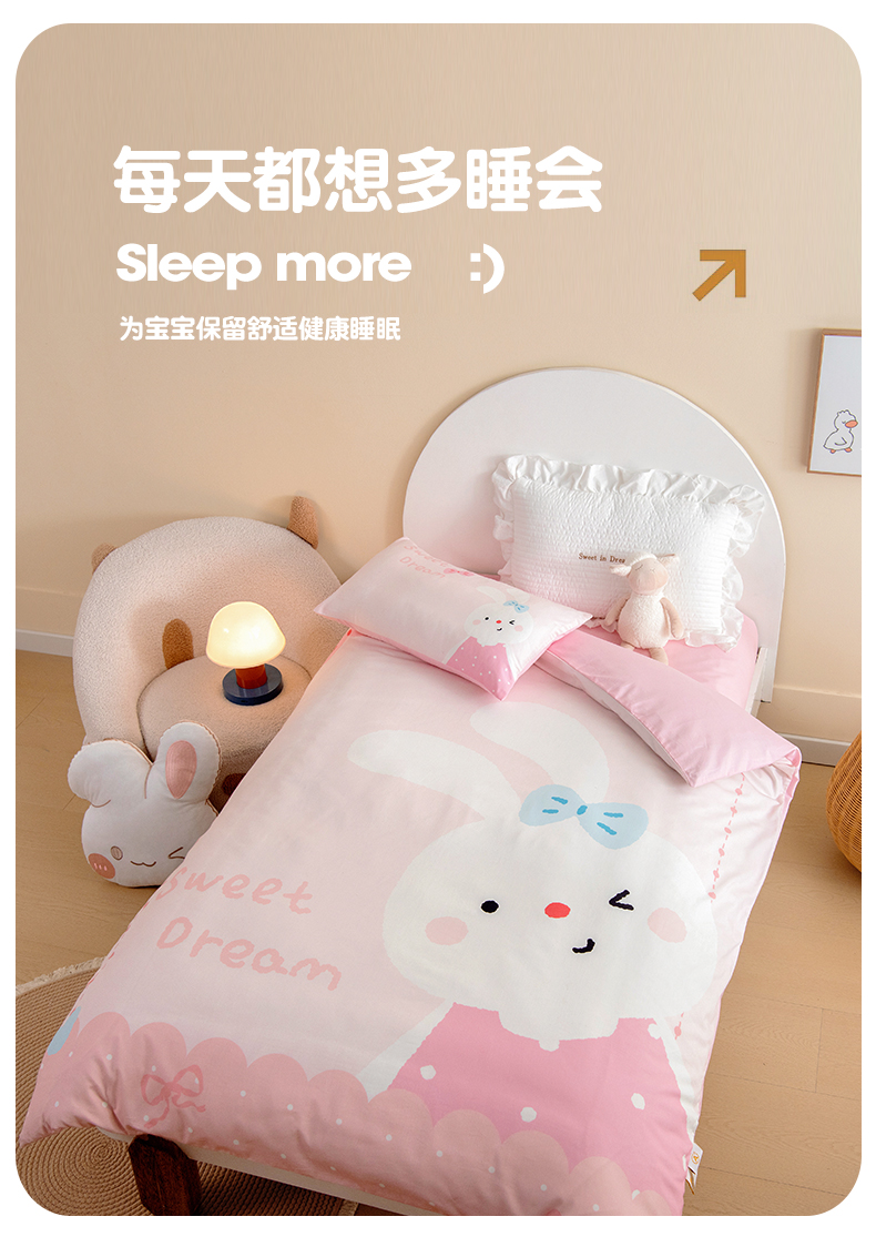 商品名称:绒梦里 2026新款A类全棉纯棉卡通大版幼儿园三件套 粉萌小兔(另垫套有60*150cm/70*150cm/80*150cm/88*168cm/80*180cm)特殊垫套尺寸的价格咨询客服微信哦!