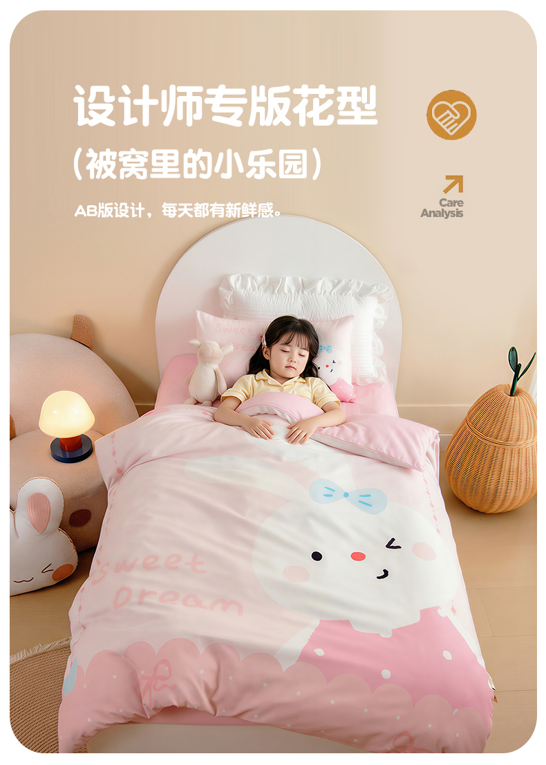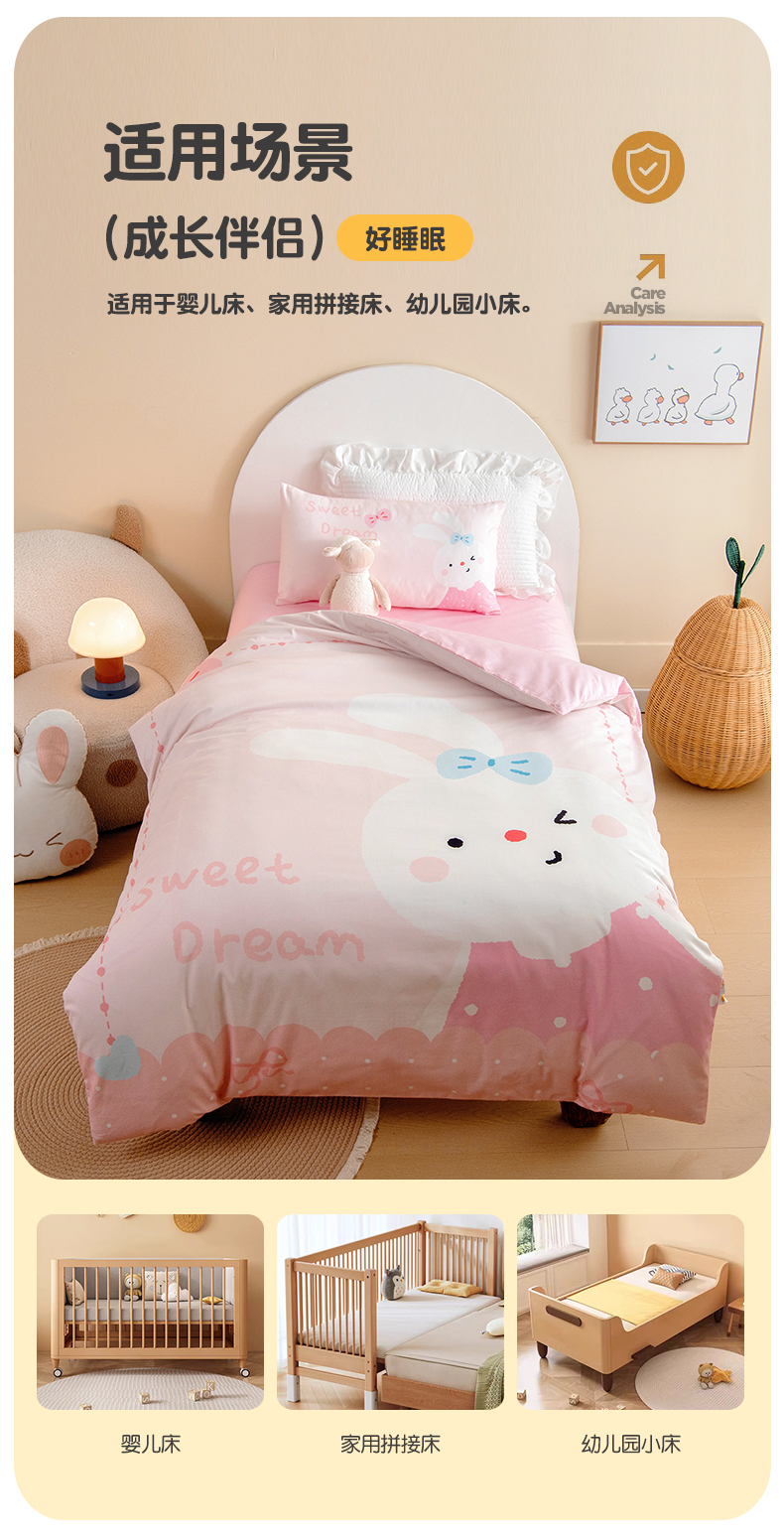绒梦里 2026新款A类全棉纯棉卡通大版幼儿园三件套 粉萌小兔(另垫套有60*150cm/70*150cm/80*150cm/88*168cm/80*180cm)特殊垫套尺寸的价格咨询客服微信哦!