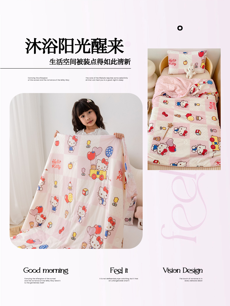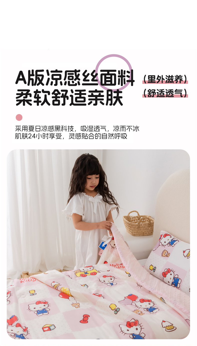 心卓婴童馆 2026新款三丽鸥凉感丝冰豆豆被被子被芯-儿童图 气球kitty猫