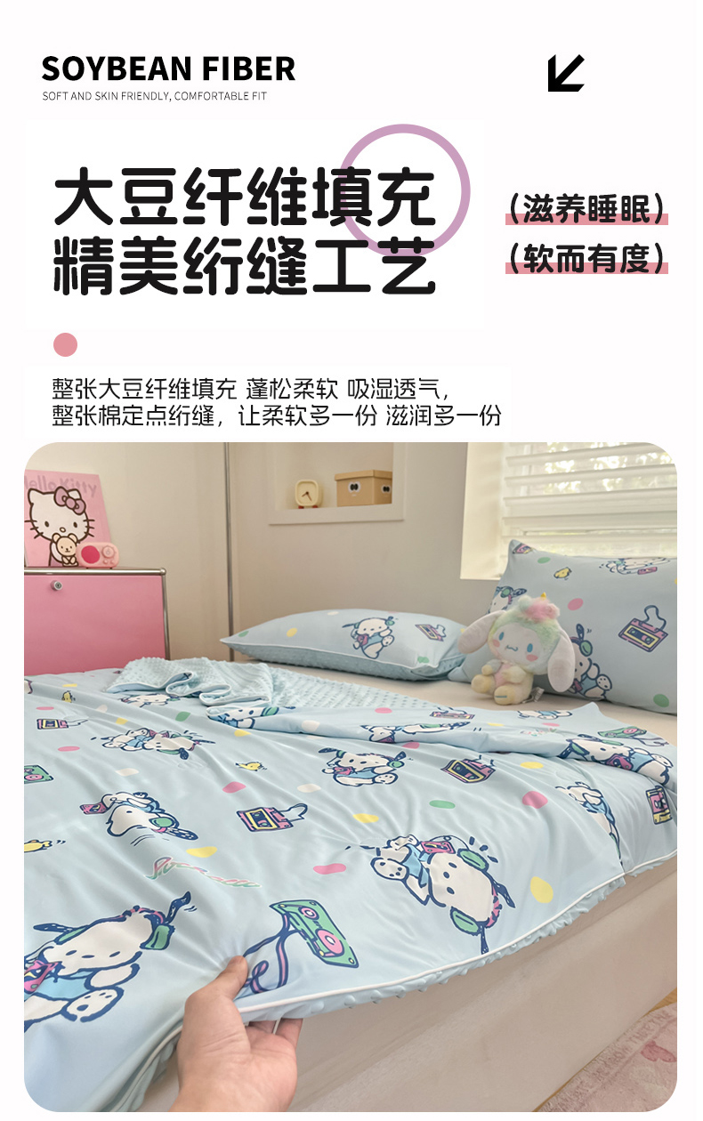 商品名称:心卓婴童馆 2026新款三丽鸥凉感丝冰豆豆被被子被芯-成人图 音乐帕恰狗