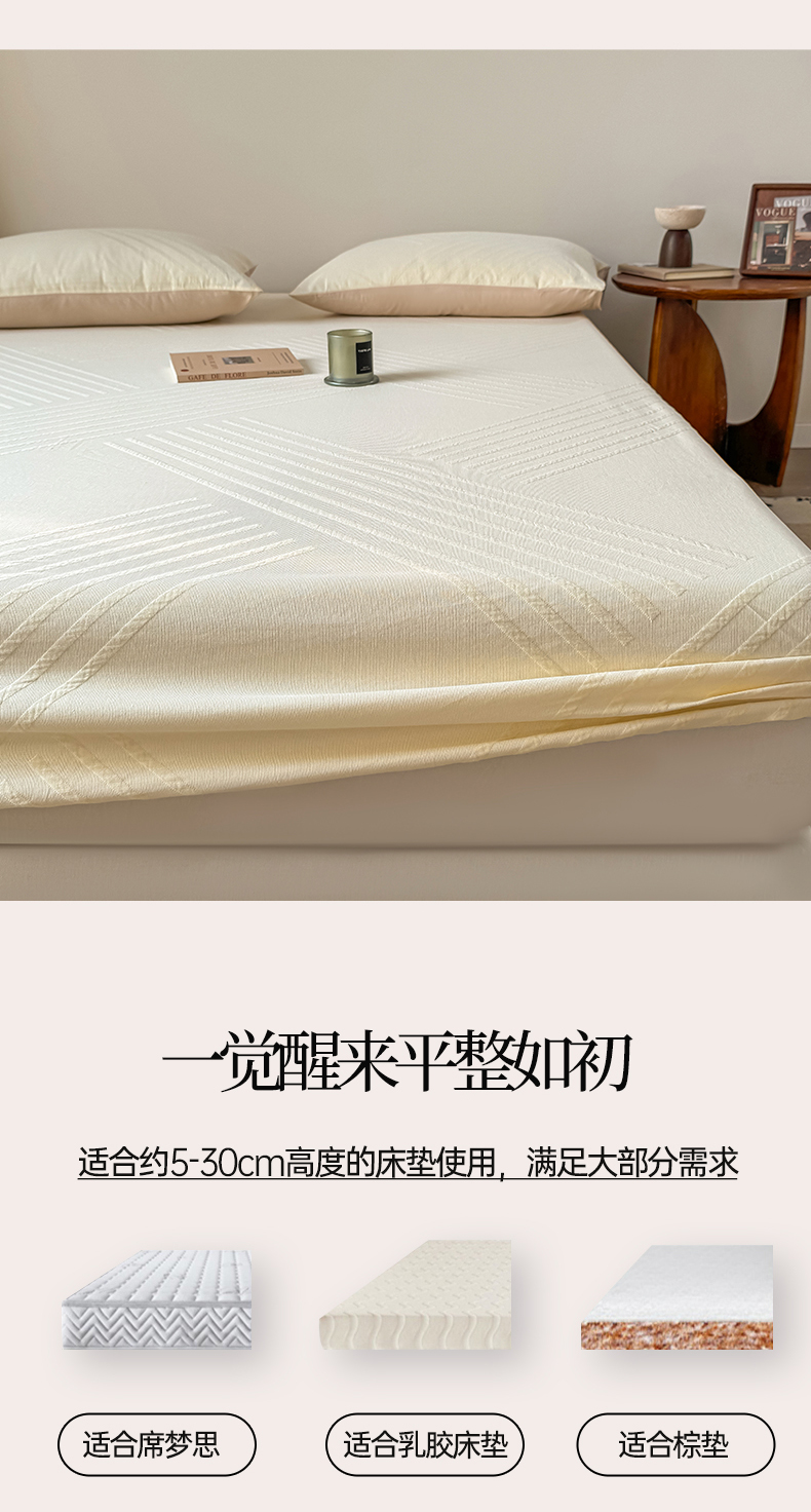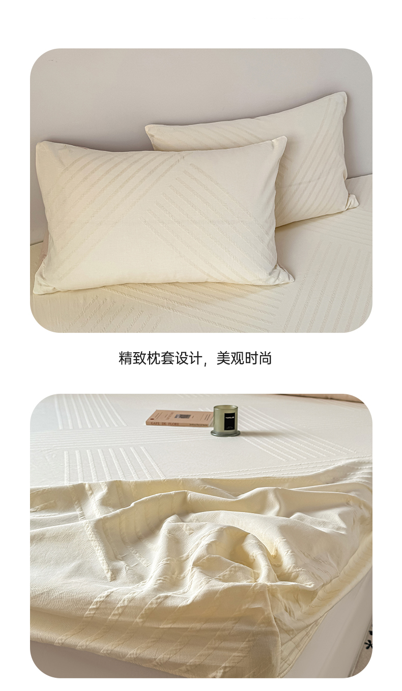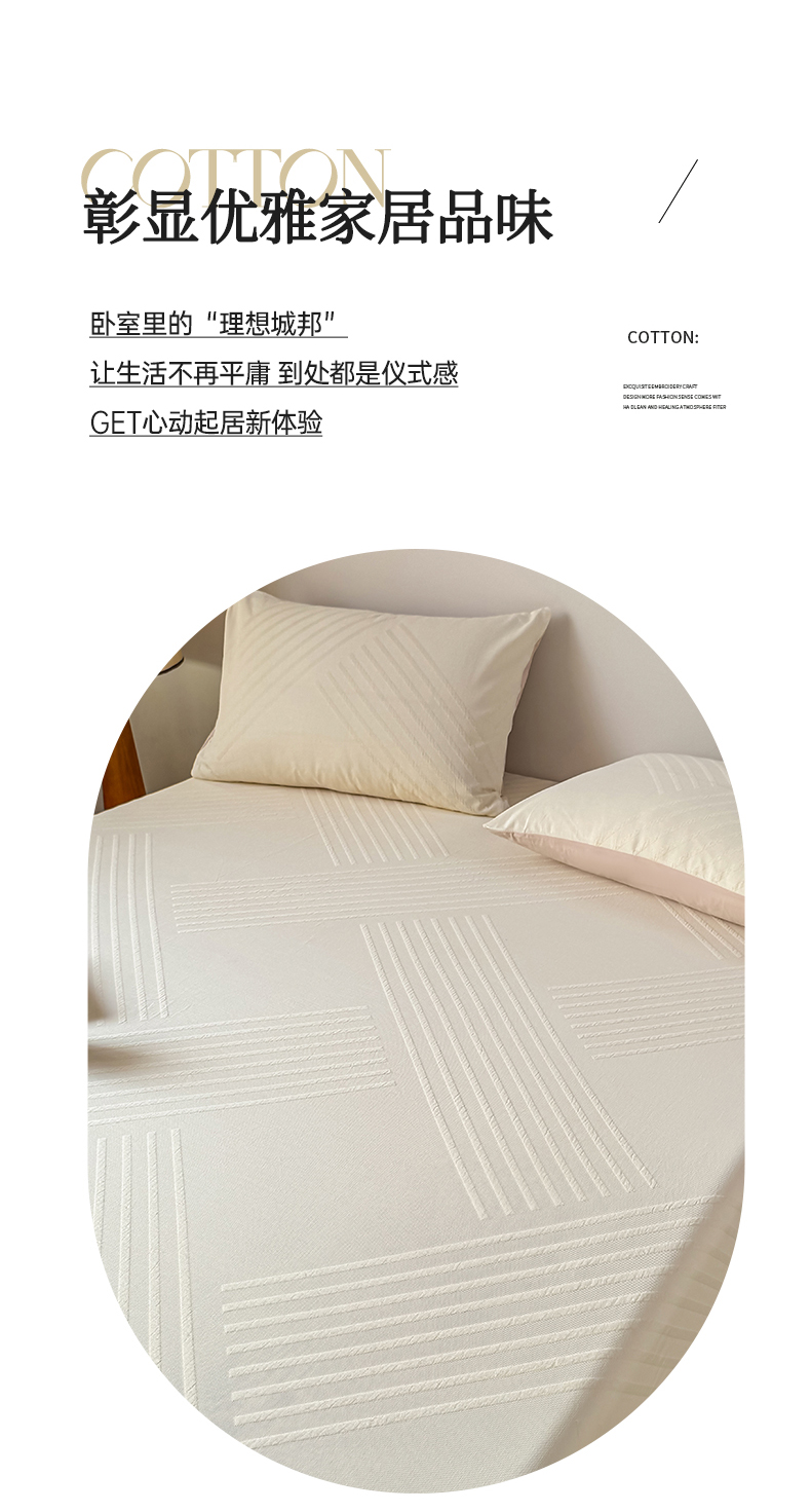 商品名称:女子家纺 2026新款全棉厚织三层水洗色织提花床笠 云汐-杏仁奶霜