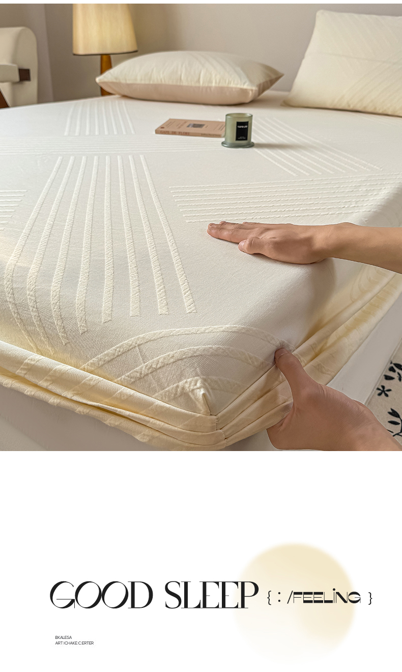 女子家纺 2026新款全棉厚织三层水洗色织提花床笠 云汐-杏仁奶霜