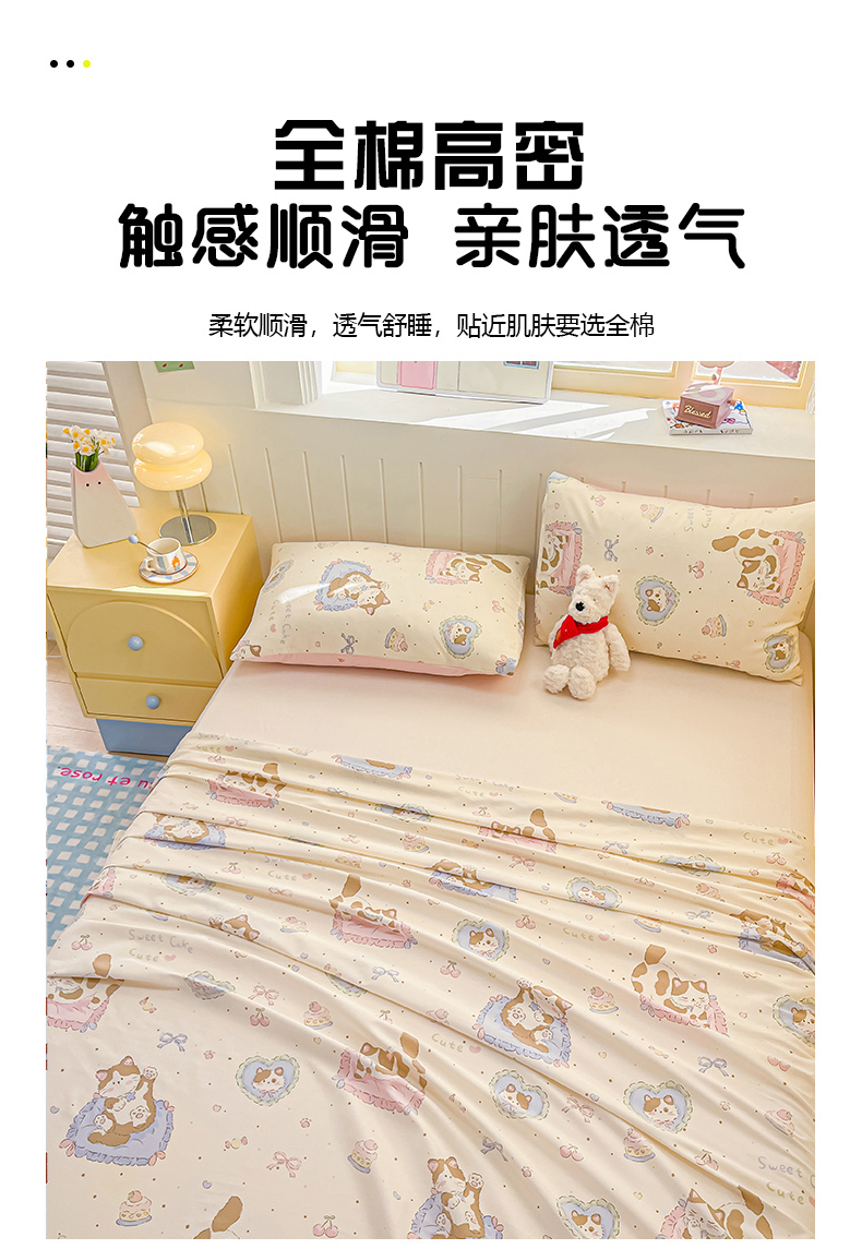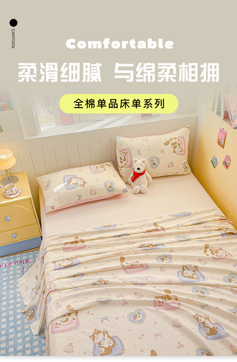 瑞莱 2026新款纯棉全棉单品印花卡通床单枕套系列 软萌萌