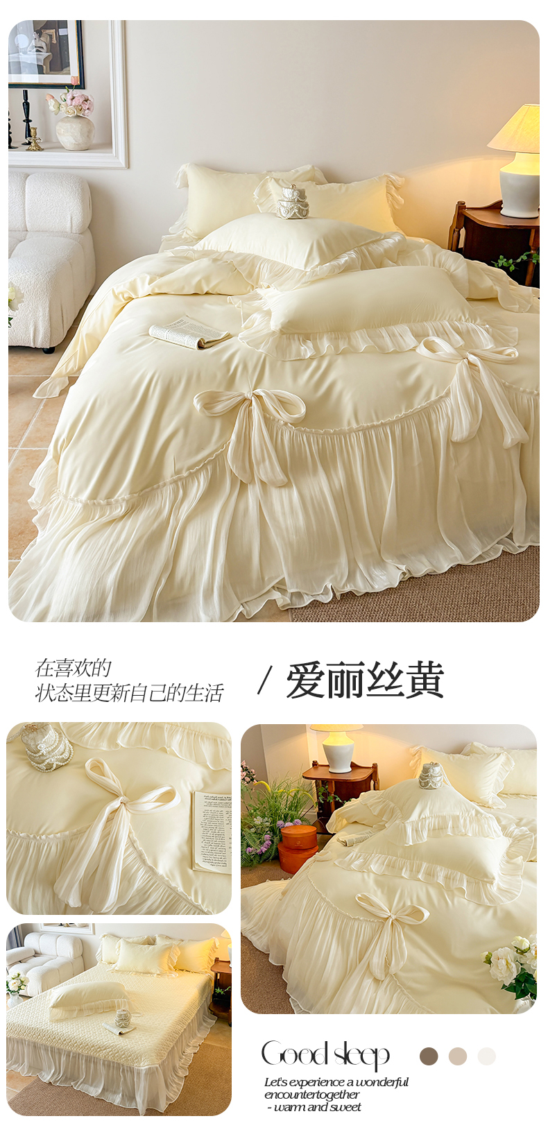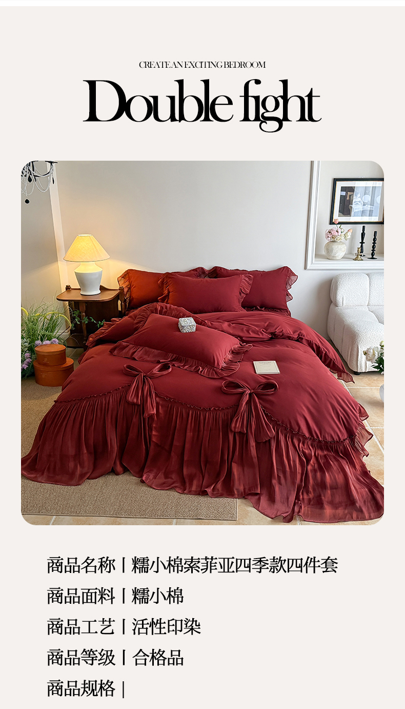 (总)吾欢心 2026春夏新款公主风索菲亚四件套,索菲亚红,索菲亚白,索菲亚粉,索菲亚黄,索菲亚蓝,索菲亚绿,索菲亚紫