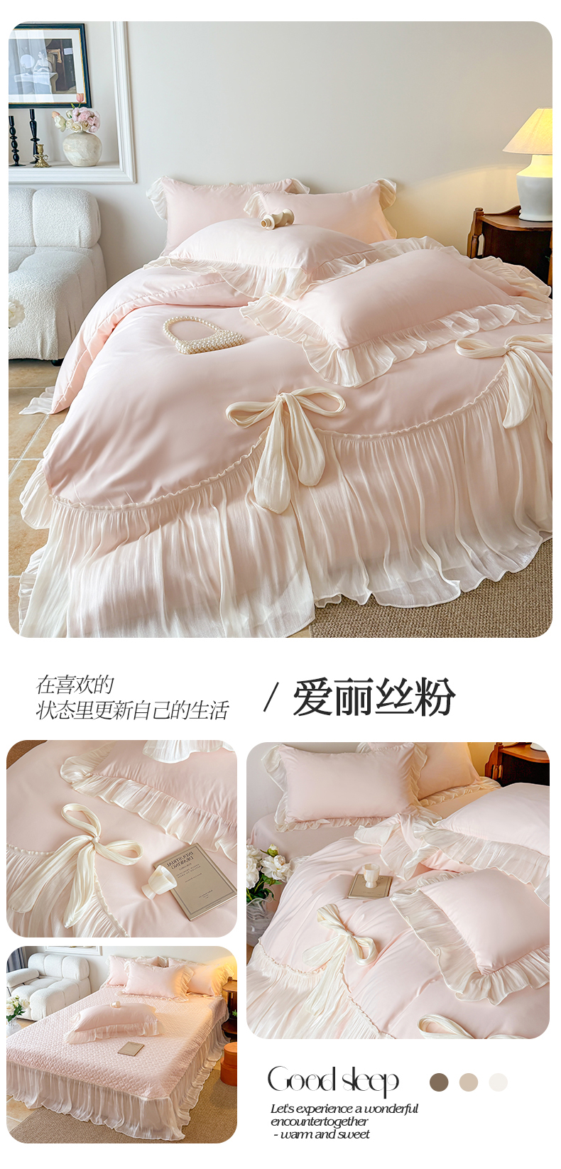 (总)吾欢心 2026春夏新款公主风彩色蝴蝶结四件套,彩色蝴蝶结白,彩色蝴蝶结粉,彩色蝴蝶结黄,彩色蝴蝶结蓝,彩色蝴蝶结绿,彩色蝴蝶结紫