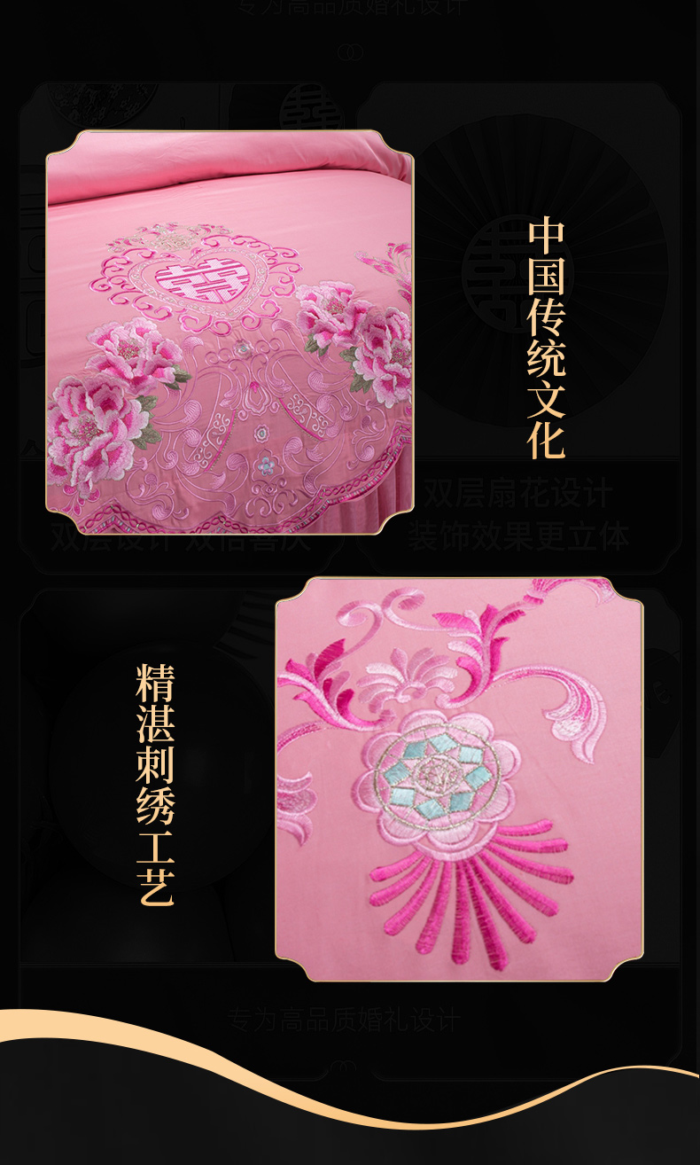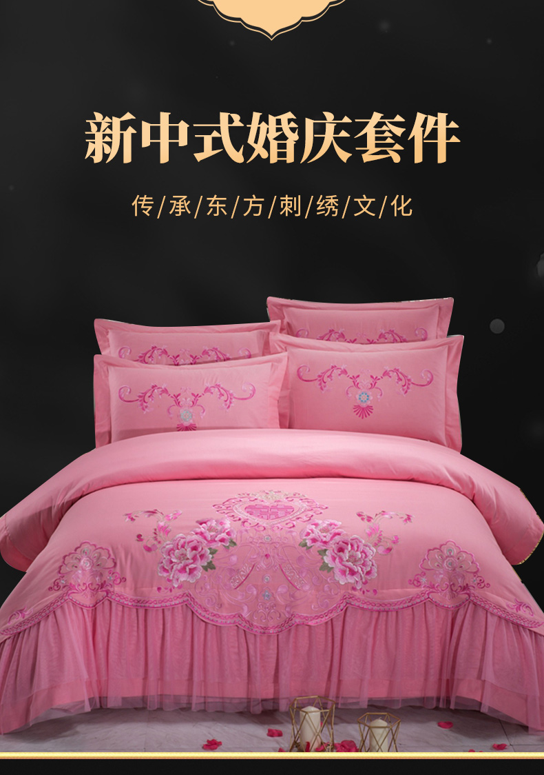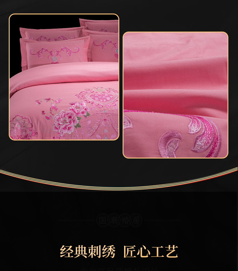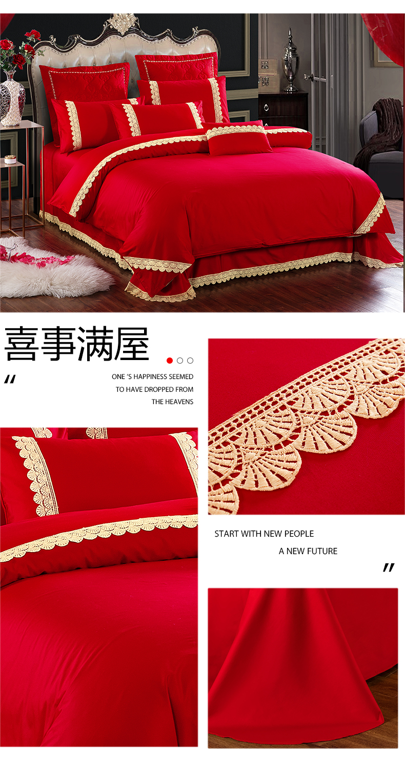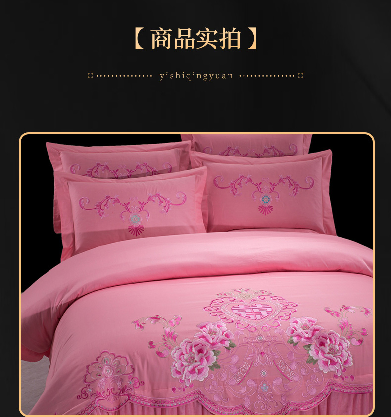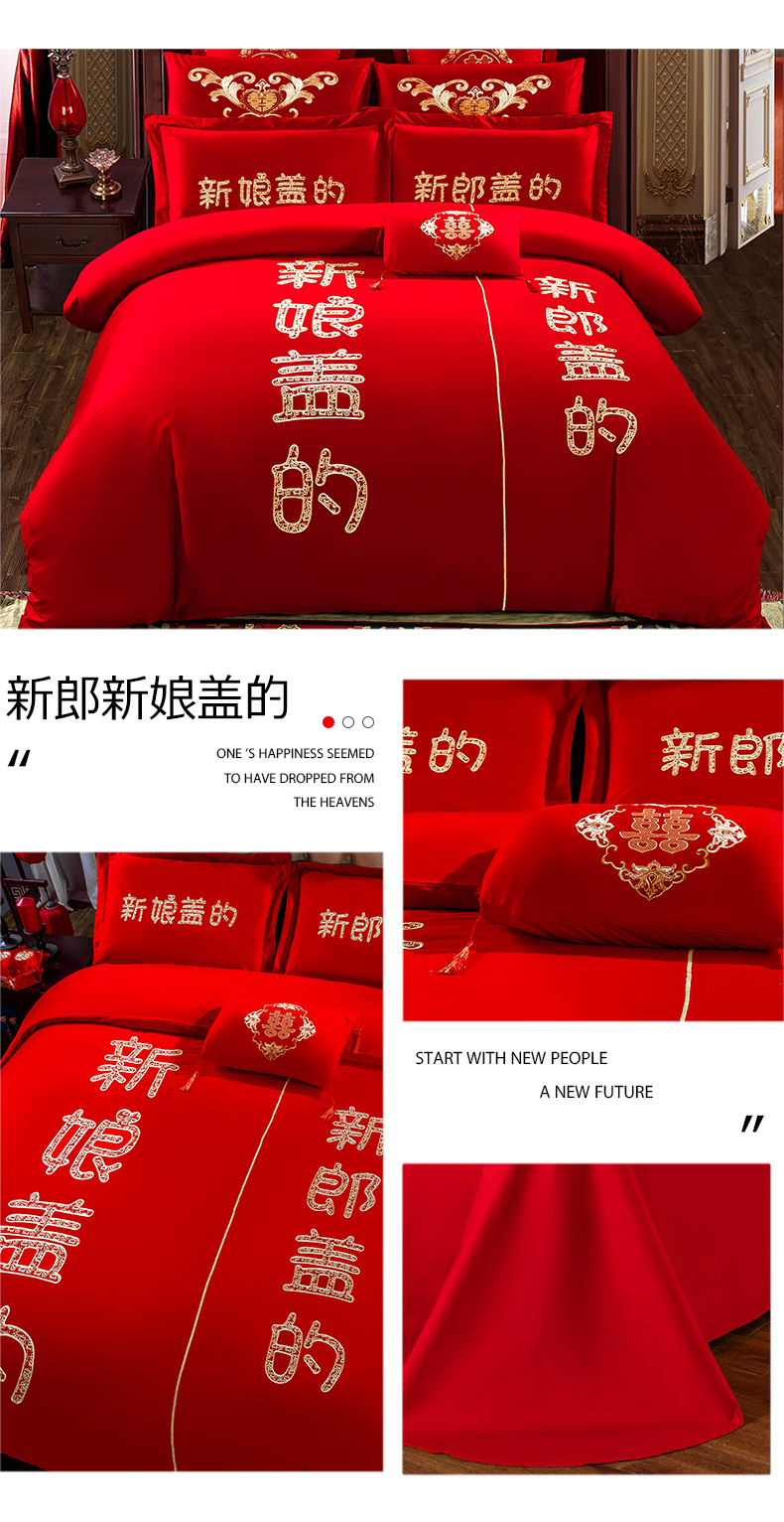 当前位置: 91家纺网 > 商品网购 > 床品套件 > 四件套 > 婚庆四件套 > 慕她家纺 慕她畅销款全棉纯棉婚庆四件套大红色刺绣结婚床上用品 花蔓喜多 玉色