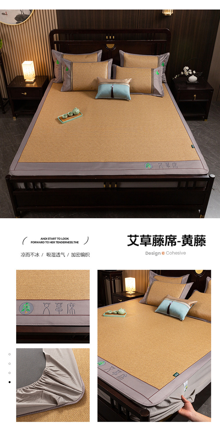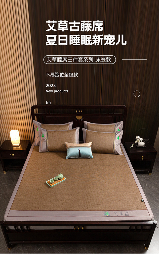 • 91家纺网 家纺一手货源 找家纺 简一 2026新款艾草古藤席床笠款凉席 (床笠)艾草席-卡其