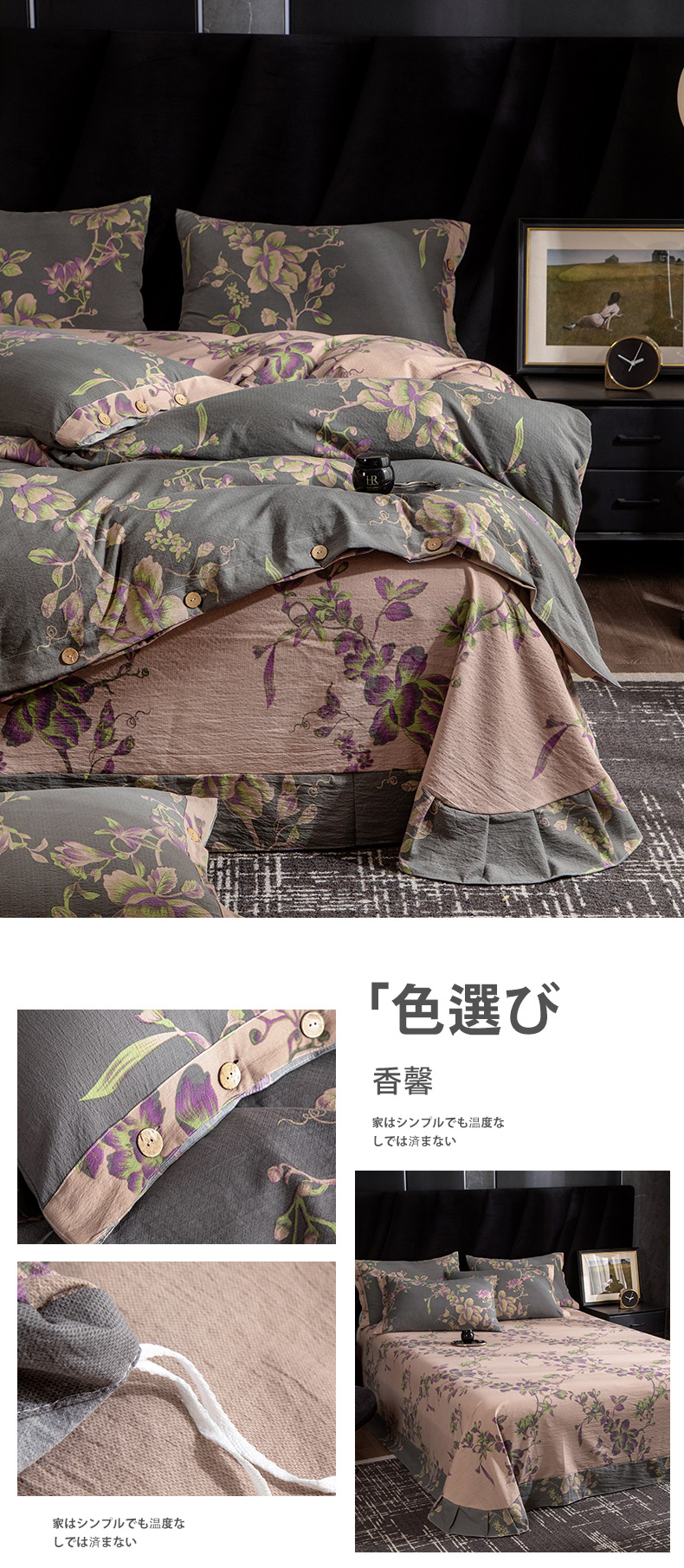 商品名称:库里梦家纺 2026春夏新款直播专供爆款色织复古双层纱四件套 香馨