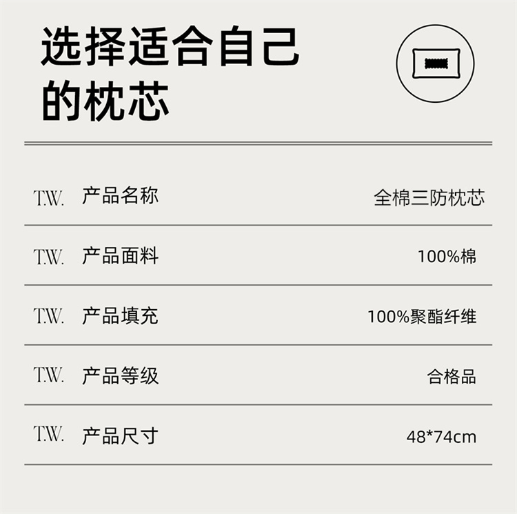 商品名称:(总)小桃姐家纺 2026新款全棉三防枕芯定型款枕头枕芯