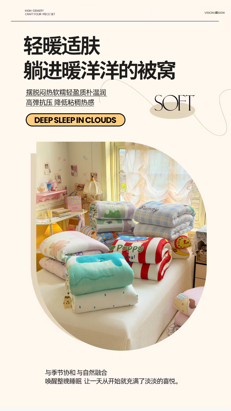 (总)2025新直播爆款水洗棉糯小棉夏被夏被四件套四季被春秋被单人学生双人被子被芯 (免费提供买家秀),帽子小熊,爱心,蘑菇屋,心想事橙,格子蝴蝶结,狗狗家族, 灰色蝴蝶结,波点紫,花花熊,简约格纹,腊肠狗,蓝色小熊,浅花忆梦,郁金香花海,田园小花粉,条纹狗,叶子小兔