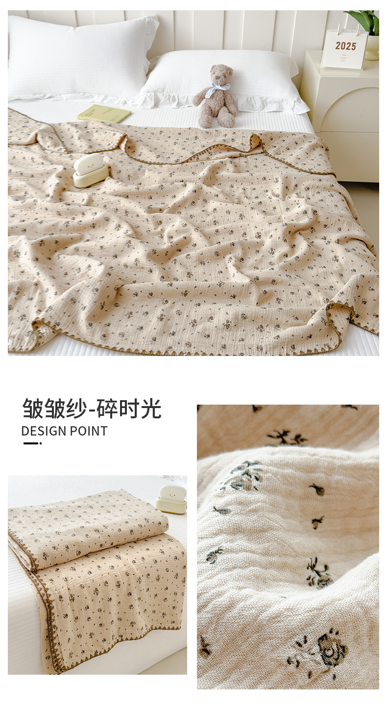 (总)布凡家居 2026新款全棉纯棉四层纱夏被盖毯床盖午睡毯沙发毯毯子,阿勒泰,浮花叙,琥珀,花绮漫叙,锦瑟,墨幽花语,佩利斯,波光粼粼