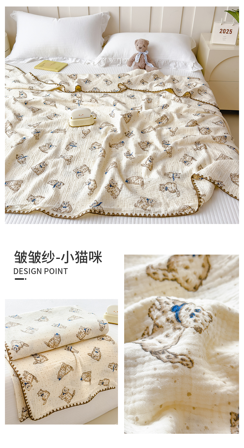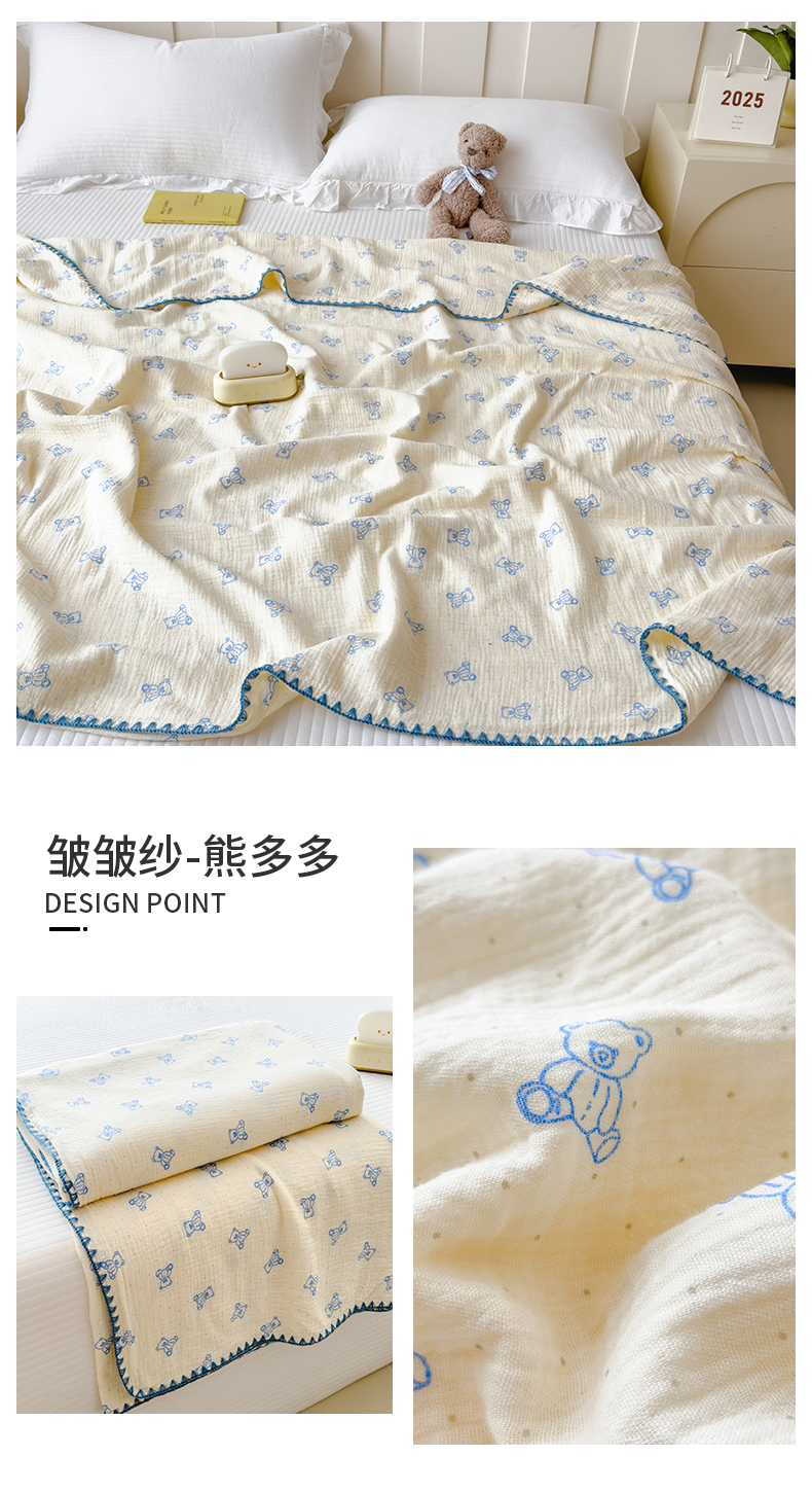 (总)布凡家居 2026春夏新款全棉刺绣皱皱纱夏被夏凉被空调被,莓有烦恼,蓝色蝴蝶结,萌萌小熊,奶芙小腊肠,桃心兔,幸运草,云间木马梦
