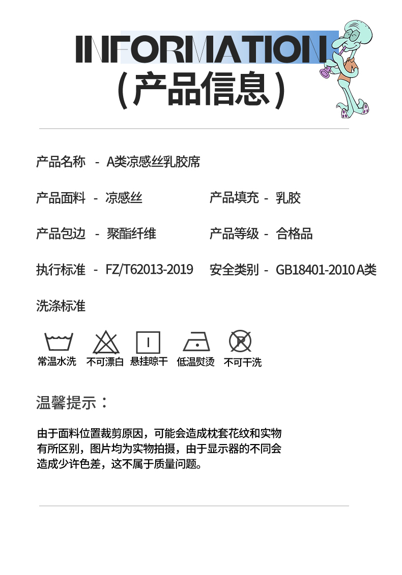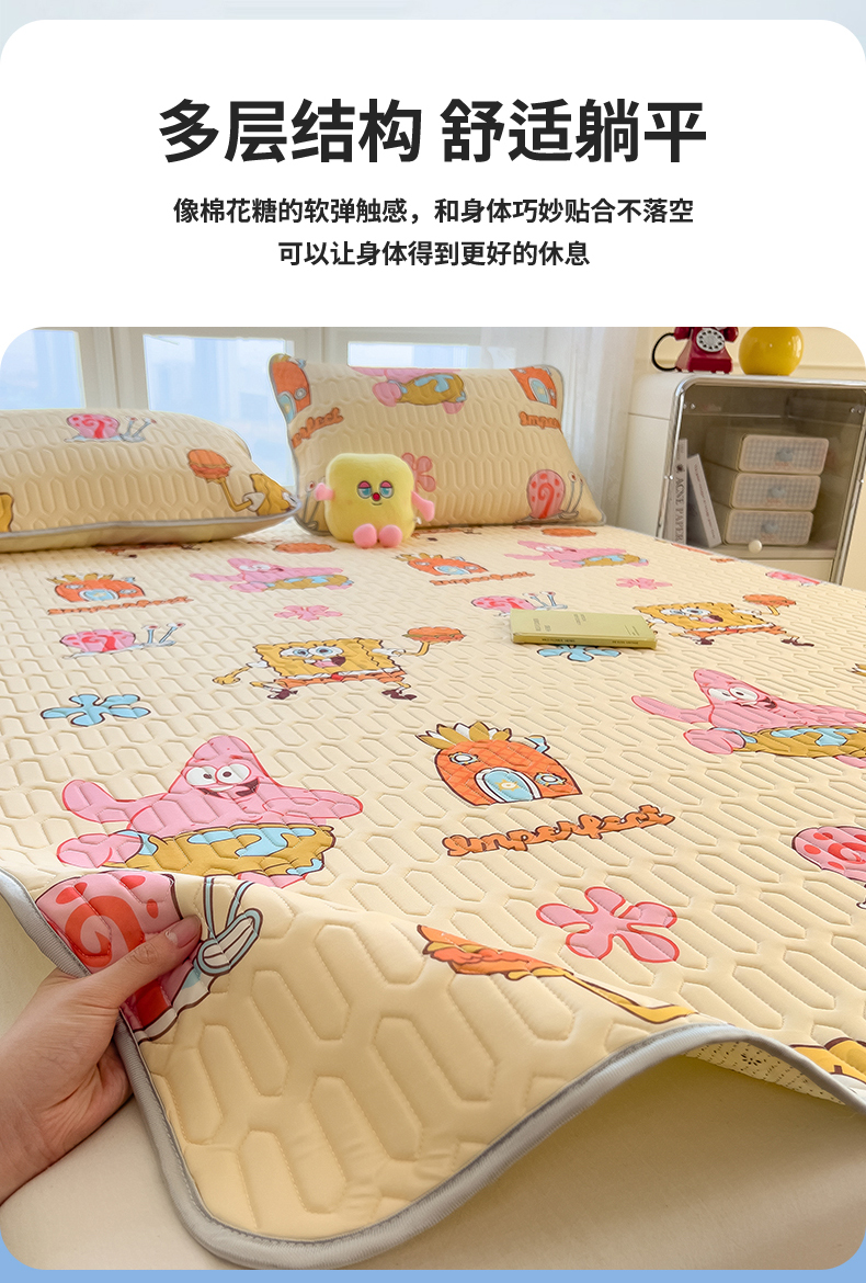 商品名称:兄弟坊 2026新款正版授权卡通乳胶凉席软凉席席子 海绵宝宝