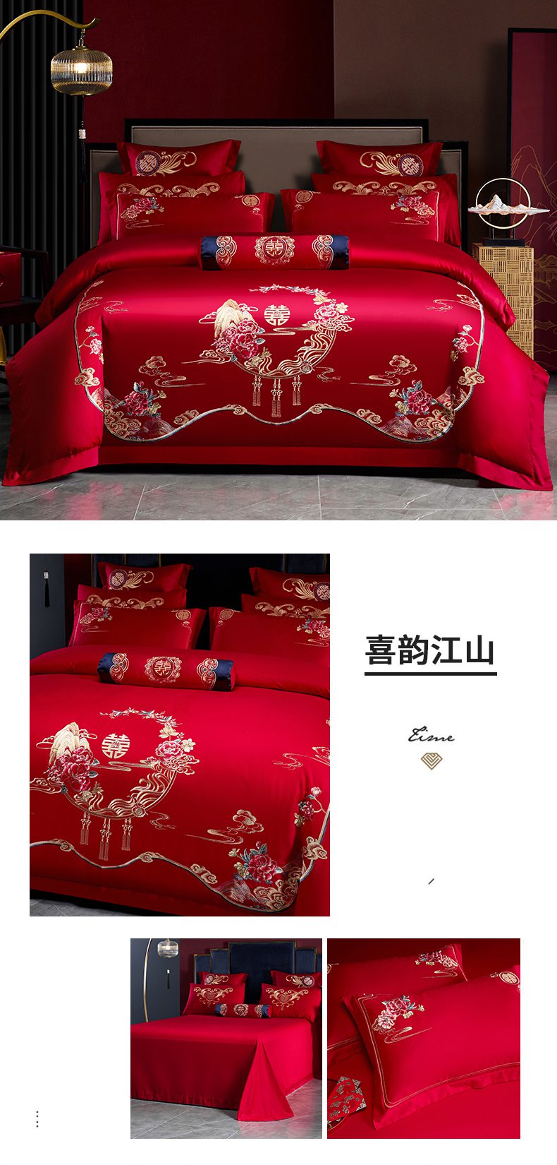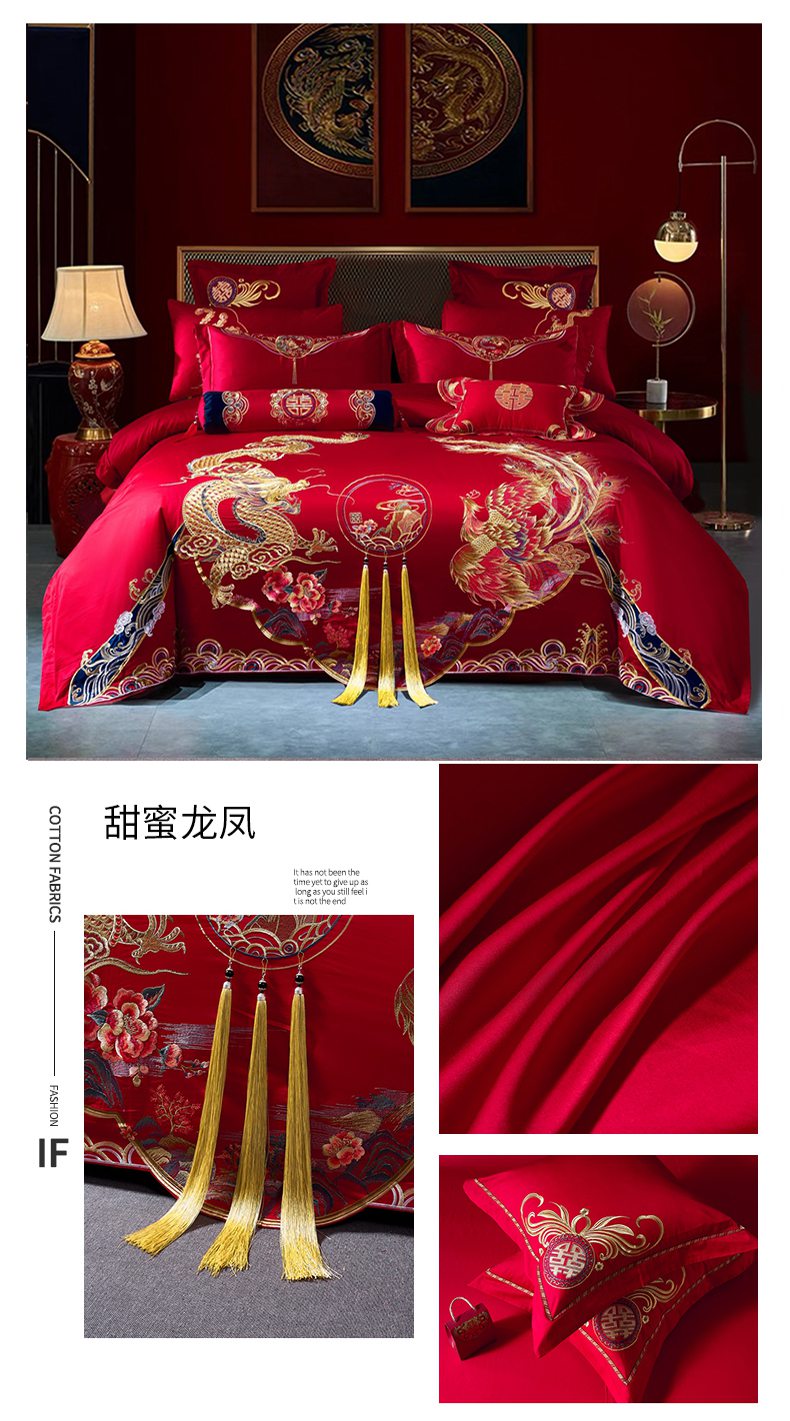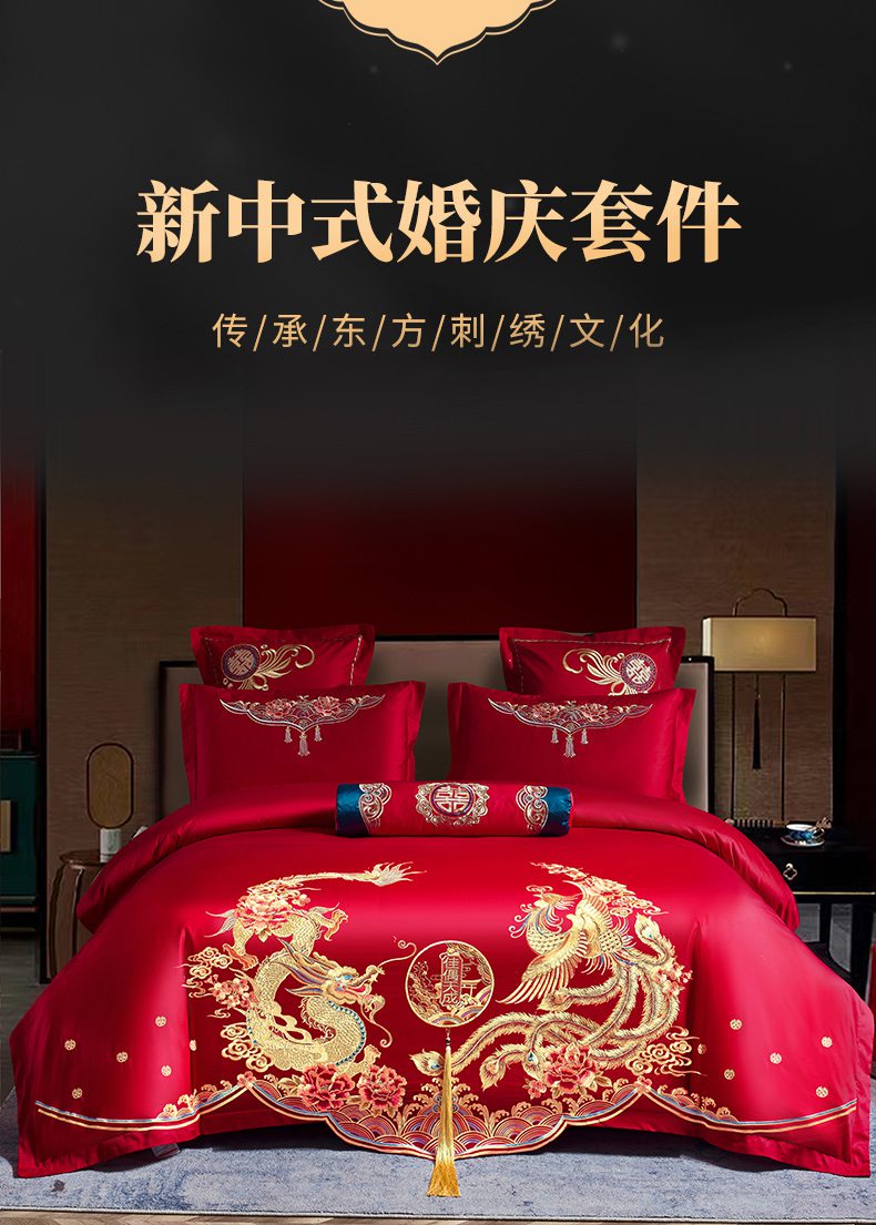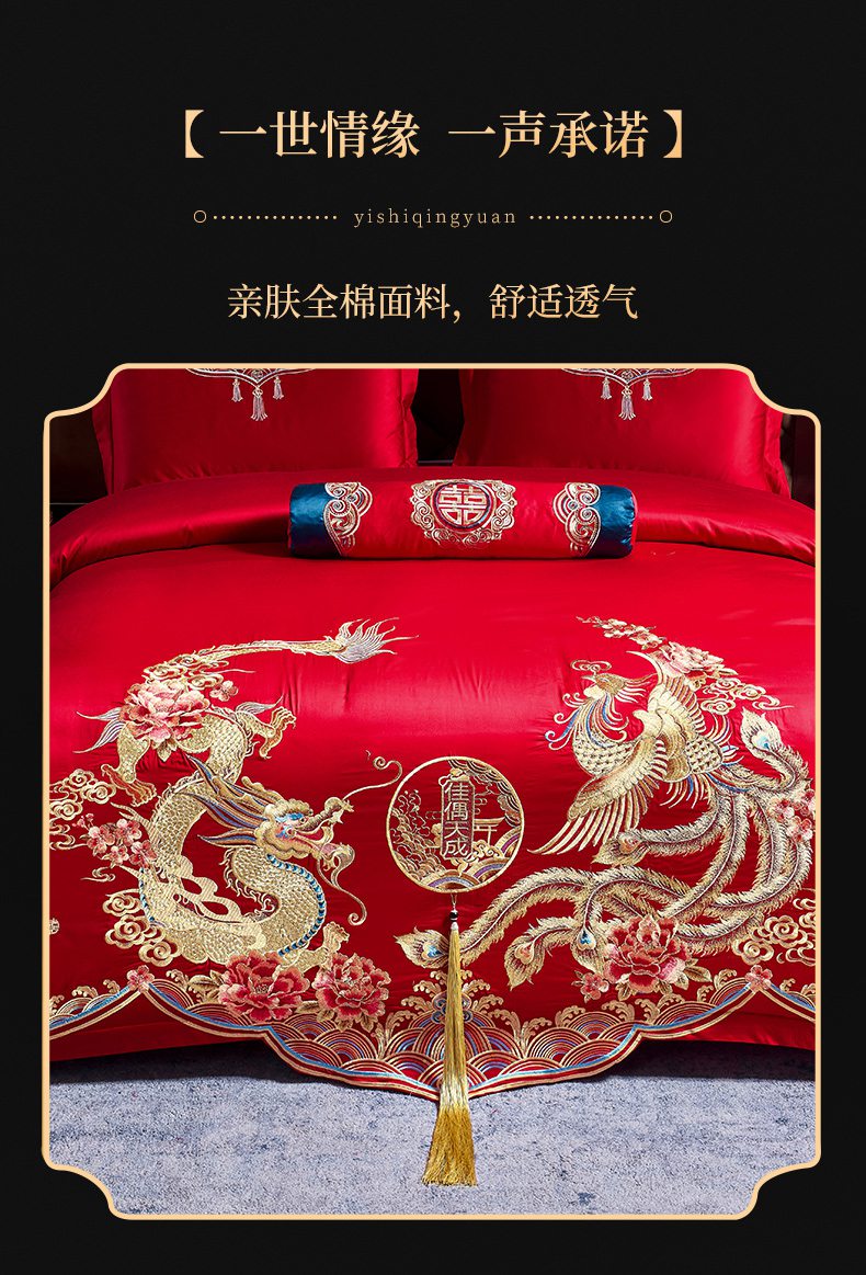当前位置: 91家纺网 > 商品网购 > 床品套件 > 四件套 > 婚庆四件套 > 慕她家纺 2026慕她大花工艺款全棉纯棉婚庆四件套大红色刺绣结婚床上用品 缔结良缘 红