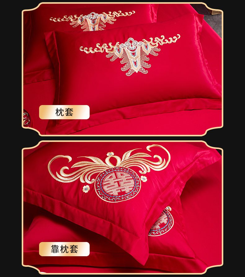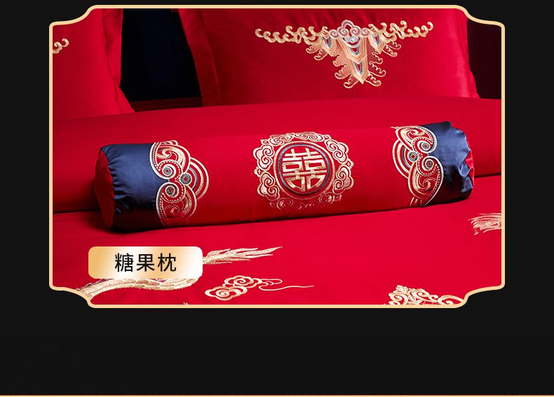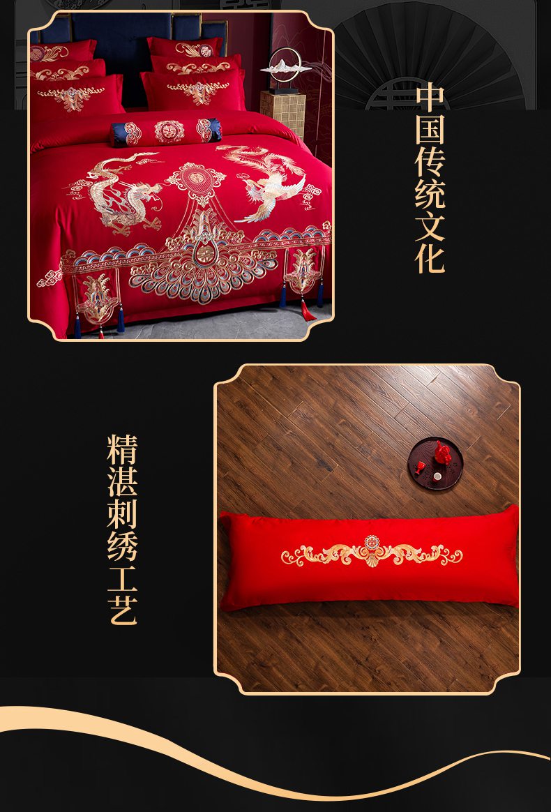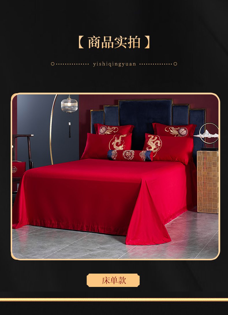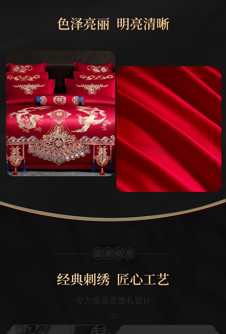 当前位置: 91家纺网 > 商品网购 > 床品套件 > 四件套 > 婚庆四件套 > 慕她家纺 2026慕她大花工艺款全棉纯棉婚庆四件套大红色刺绣结婚床上用品 龙翔凤舞